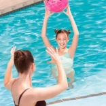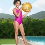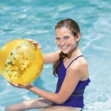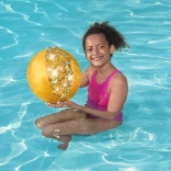 The elegant brocade beach ball by Bestway brings plenty of fun in your free time. This golden ball is filled with shimmering brocade that joyfully swirls and sparkles during play.