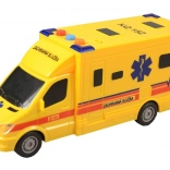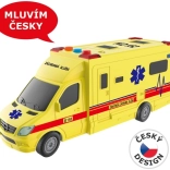 This finely detailed ambulance in the Czech Emergency Medical Service design brings kids lots of action and fun. Press the button to trigger realistic dispatch and crew announcements, complemented by a working light bar and sound effects. Thanks to the friction drive, the vehicle rolls easily across the floor without constant pushing.