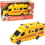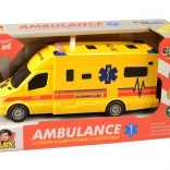 A realistic kids’ friction-powered ambulance with light effects, siren sound, and voice announcements from dispatch and crew. Made of plastic, approx. 19 cm, ideal for boys and girls aged 3 and up.