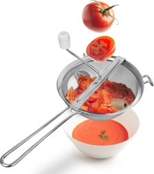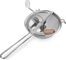 Wide kitchen use – ideal for tomatoes, plums, pumpkin, and cooked vegetables. Perfect for preparing homemade jams, mashed potatoes, sauces, creamy soups, baby food, dips, smoothies, and sorbets. The traditional mechanism ensures quick and even milling – just a few turns.