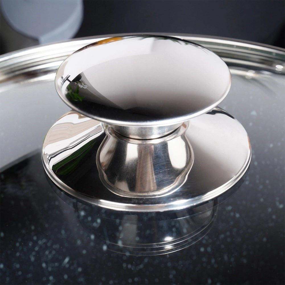 Tempered glass with a stainless-steel rim and a practical vent to release excess steam. Keep cooking under control without unnecessary lifting of the lid.