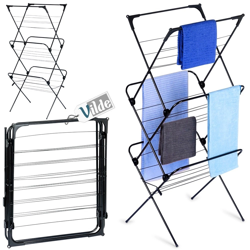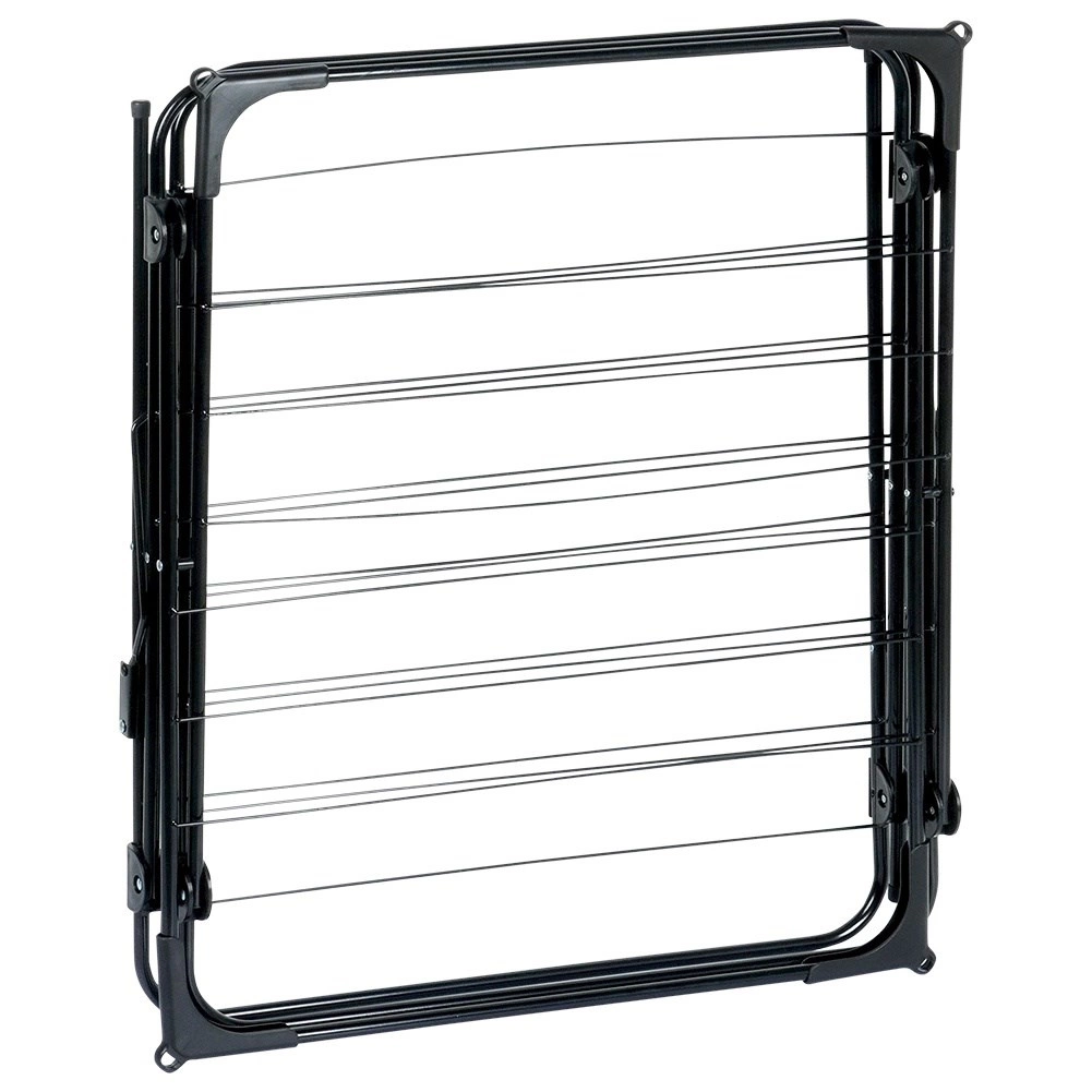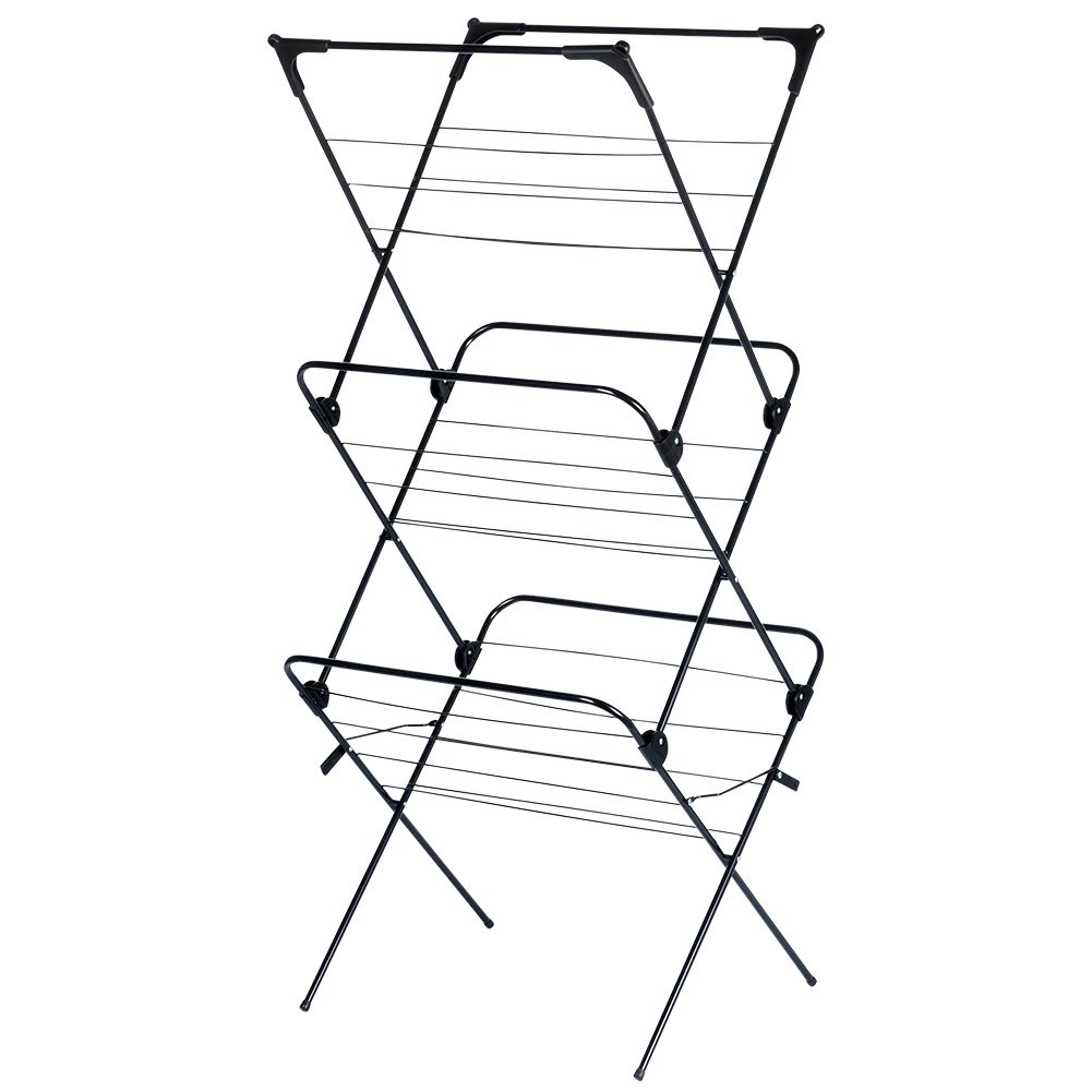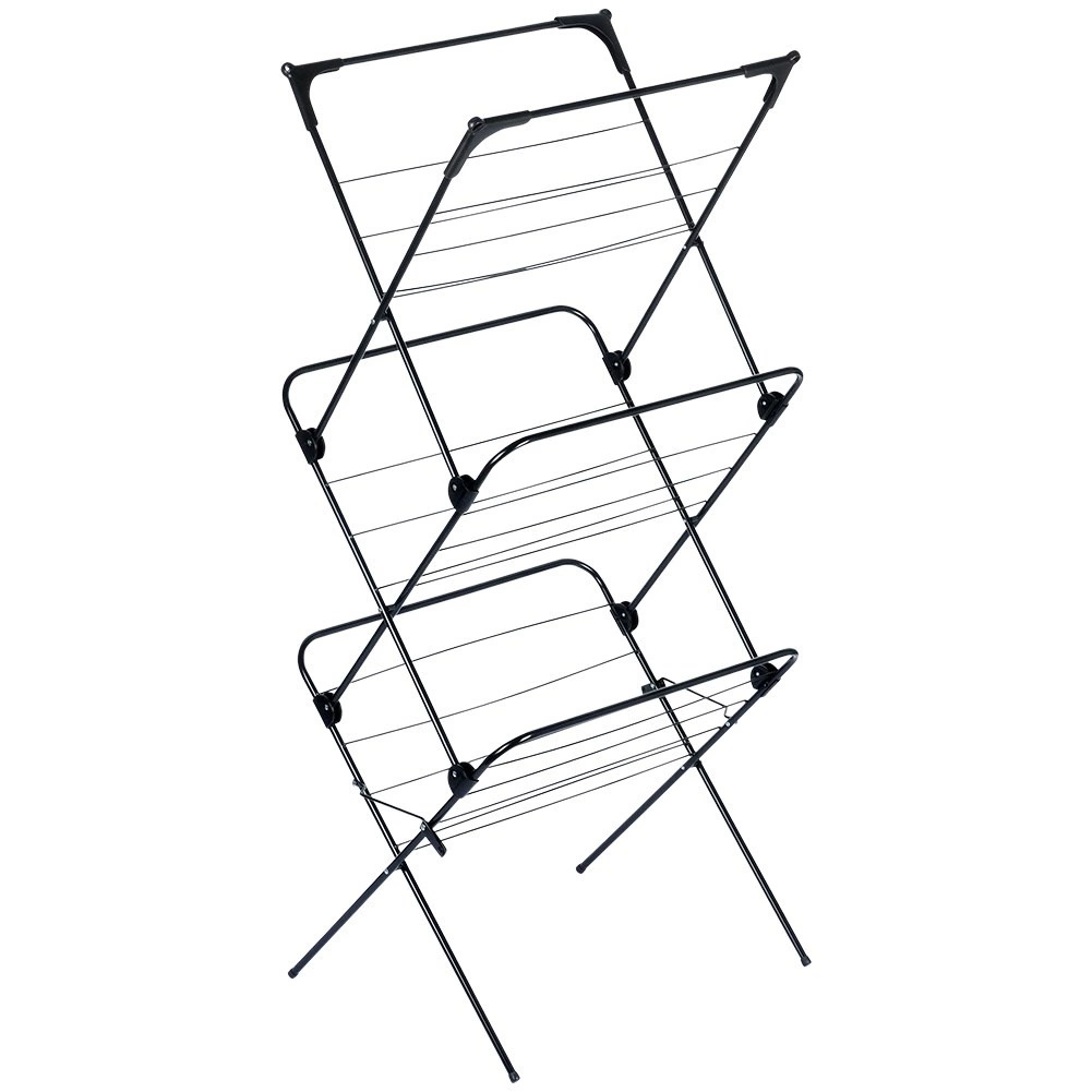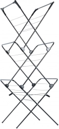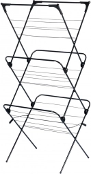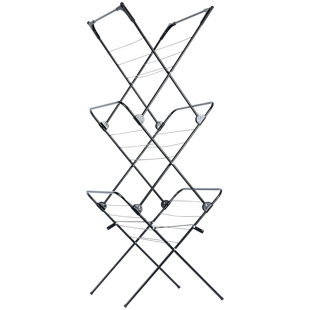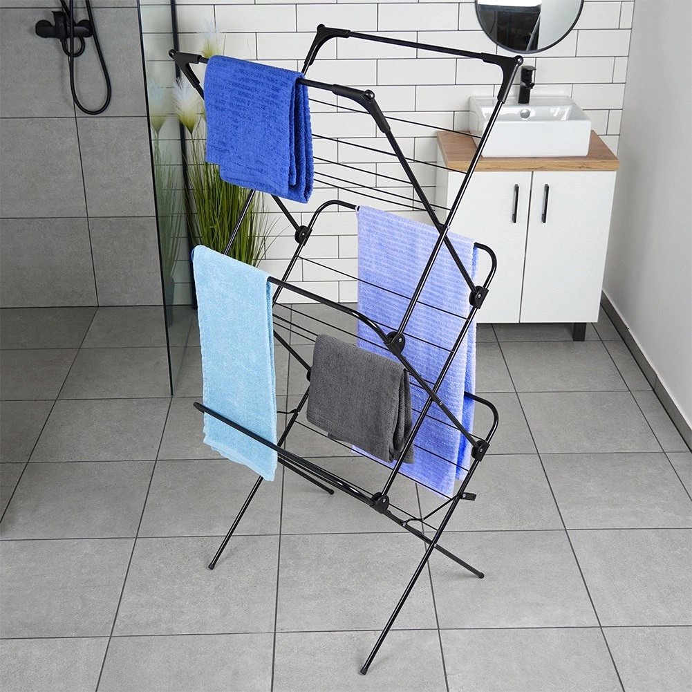 This vertical drying rack in elegant black is made of durable powder-coated metal. Three levels provide ample room for towels, shirts, and delicates, while the stable X-frame ensures safe use indoors and outdoors.