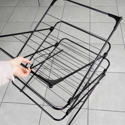 With a quick folding mechanism, it collapses to 74 × 61 × 7 cm for storage beside a wardrobe or in a narrow space. Its minimalist design suits any home and makes everyday laundry drying easier.