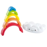 This adorable rainbow-and-cloud stacking toy is an ideal first toy for skill development. Thanks to its bright colors, it naturally attracts children and motivates them to explore shapes and sizes. While stacking the arches, they practice grip, hand–eye coordination, and patience.
