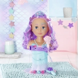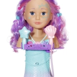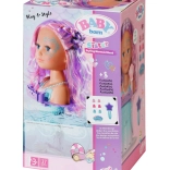 The BABY born Sister Mermaid styling head turns every bath into an undersea hairdressing salon. It attaches to the tub with sturdy suction cups, and removing the shell shower head activates the pump—water really flows when the head is in the water. The easily rotatable head with painted facial details invites make-up play and beauty-salon fun.