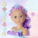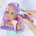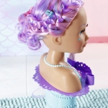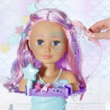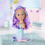 Turn bath time into a magical beauty salon with the BABY born Sister styling head in a mermaid design. Thanks to the suction cups, it easily attaches to the edge of the tub, where it delights with long, high-quality strands for endless hairstyles, an electronic shower with a pump, and plenty of accessories. It supports creativity, fine motor skills, and offers long-lasting fun while washing, brushing, and decorating hair.