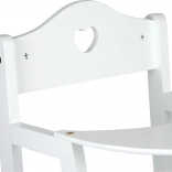This white wooden doll highchair is a stylish addition to a child’s room or living space. The subtle heart cutout in the backrest adds a cute touch, while the solid construction provides safe, long-term fun.
