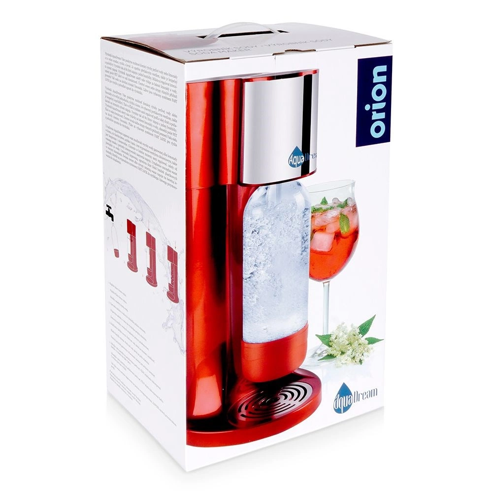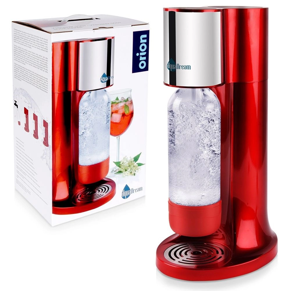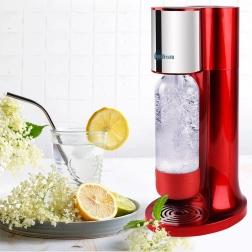 The AQUADREAM home sparkling water maker in elegant red lets you prepare fresh sparkling water, lemonades, and even gently sparkling wine in moments. It offers adjustable carbonation intensity, a safety valve, and a practical FAST LOCK system for quick bottle attachment. Save money and the planet – from one CO₂ cylinder make up to 80 l of drinks and avoid hundreds of plastic bottles.
