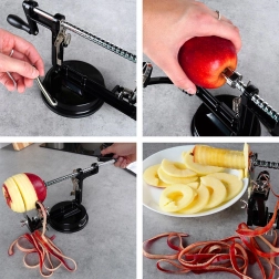 A practical kitchen helper that in a single operation peels, cores, and slices apples, pears, or potatoes into striking spirals. Thanks to precise guidance and sharp blades, you get uniform slices ideal for strudels, crispy chips, dehydrating, or decorative serving.