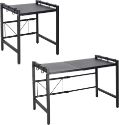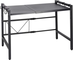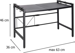 Tidy up your kitchen and make full use of the space above your microwave. This metal shelf with an industrial touch offers an extendable width of 38–63 cm and adjustable shelf height (34 or 43 cm), so you can easily adapt it to your appliances and cookware. The powder‑coated steel is resistant to scratches and moisture, making it ideal even for demanding use.