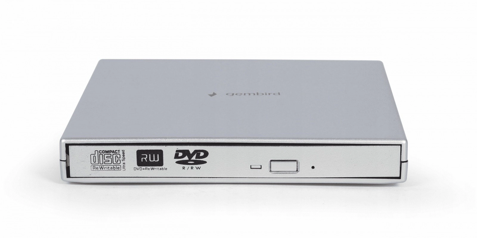 Compact external optical drive for reading and writing DVD and CD discs via USB. Ideal for laptops and desktop PCs without an internal drive. Offers a slim design, easy USB connection, and reliable writing of DVD±R/RW and CD-R/RW.