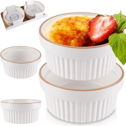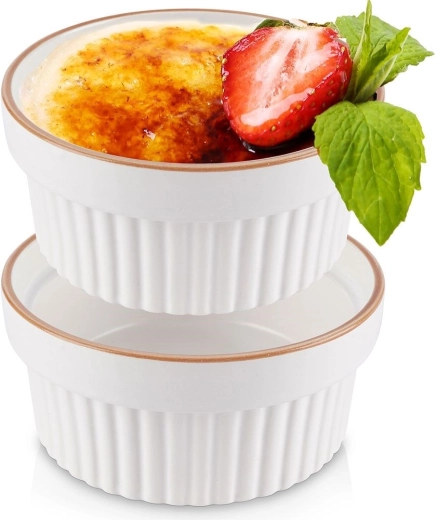 Elegant baking ramekins made from quality porcelain ceramic are a great choice for preparing desserts like crème brûlée or soufflé, as well as smaller baked dishes. Thanks to the classic shape with vertical ribbing, they are easy to hold and look beautiful served straight from the oven to the table.