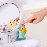 Press the pink button – the mirror frame lights up and a melody starts to motivate kids to wash their hands long enough.