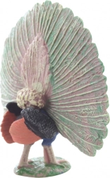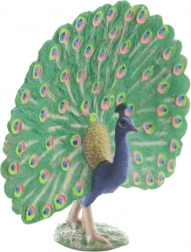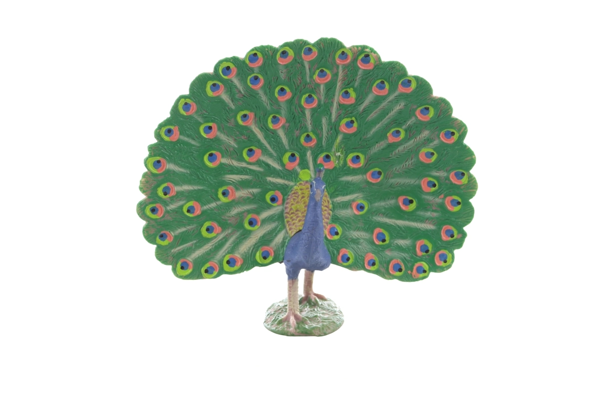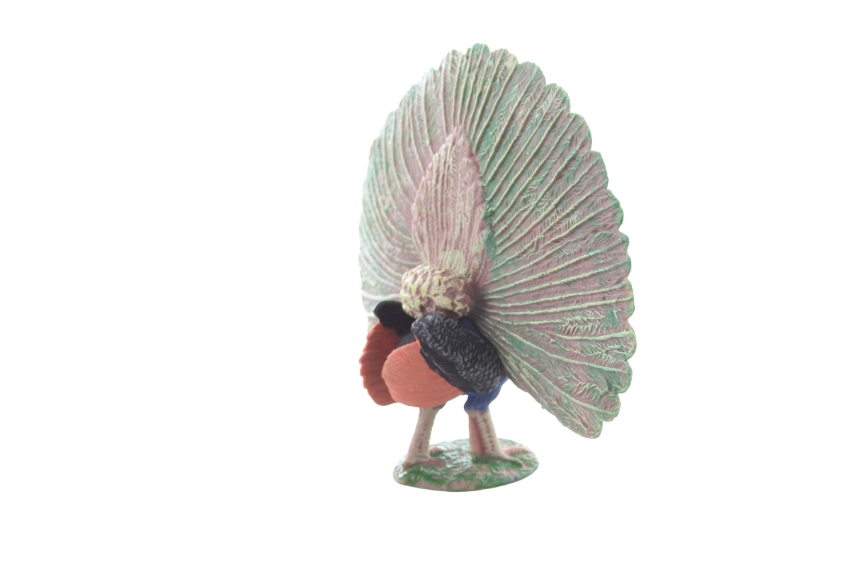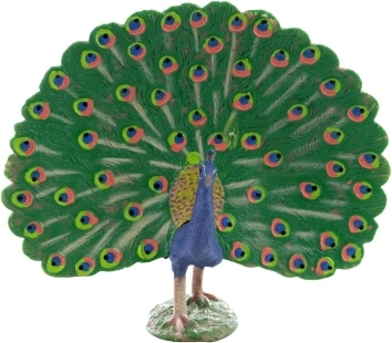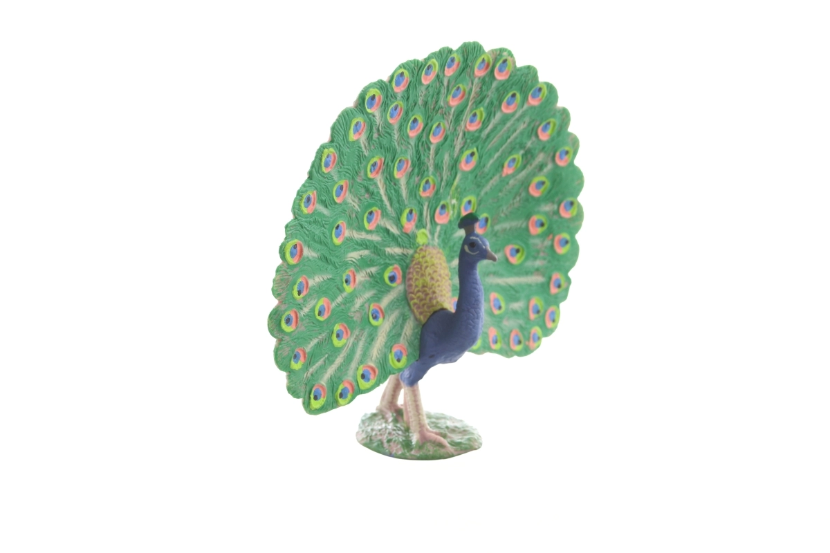 Elaborate plumage with striking “eyes” and a contrasting blue body gives the figurine an authentic look that captivates at first glance.