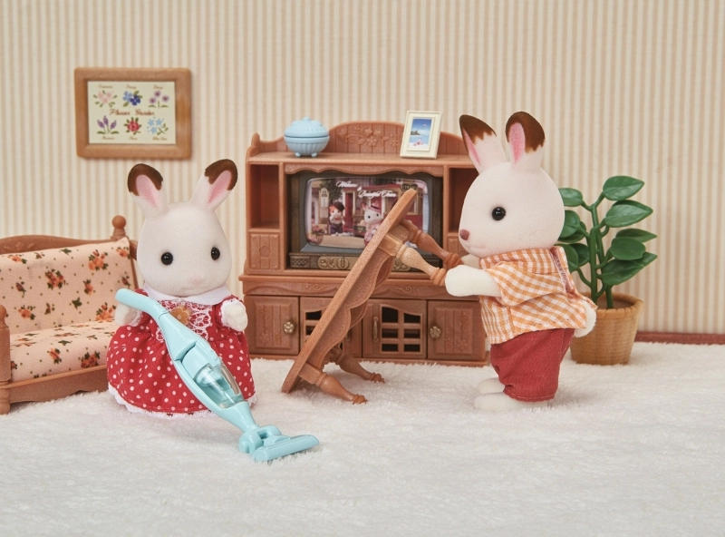 Expand your SYLVANIAN FAMILIES world with a finely detailed washing machine and vacuum cleaner. Children can imitate everyday adult chores and enjoy realistic scenes thanks to the rotary dial that simulates water filling and drum spinning. The detachable handheld vacuum lets them “clean” even the small corners of the house.