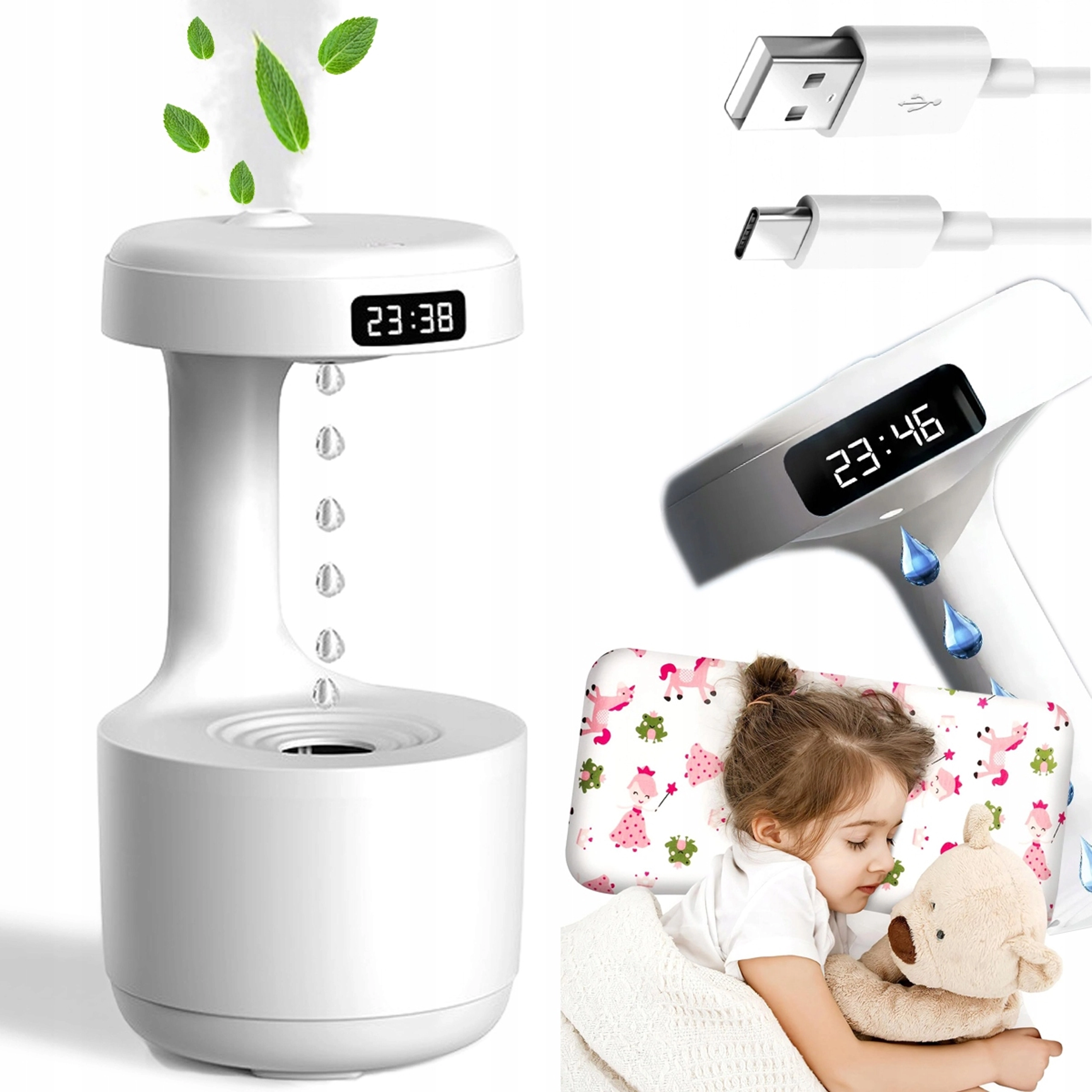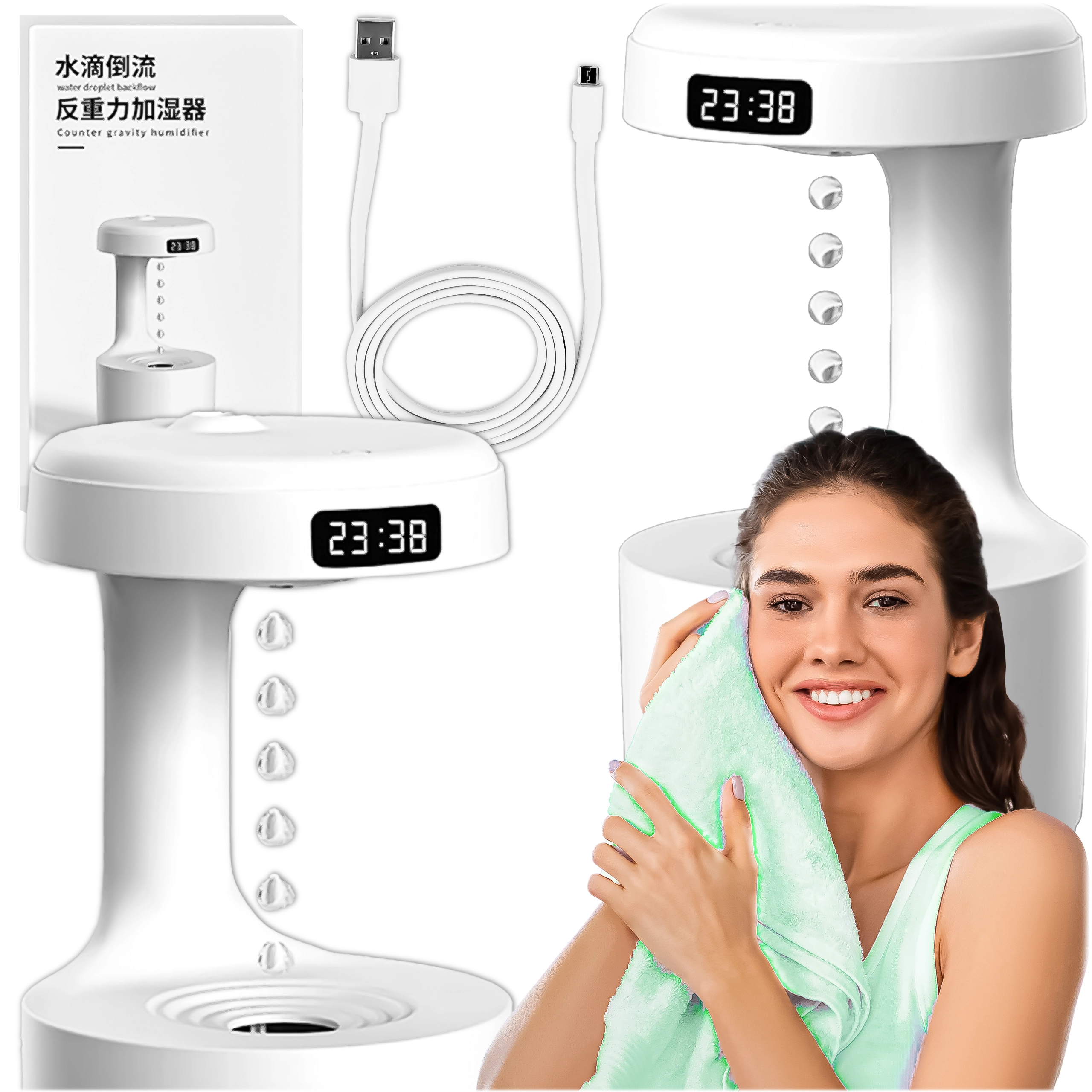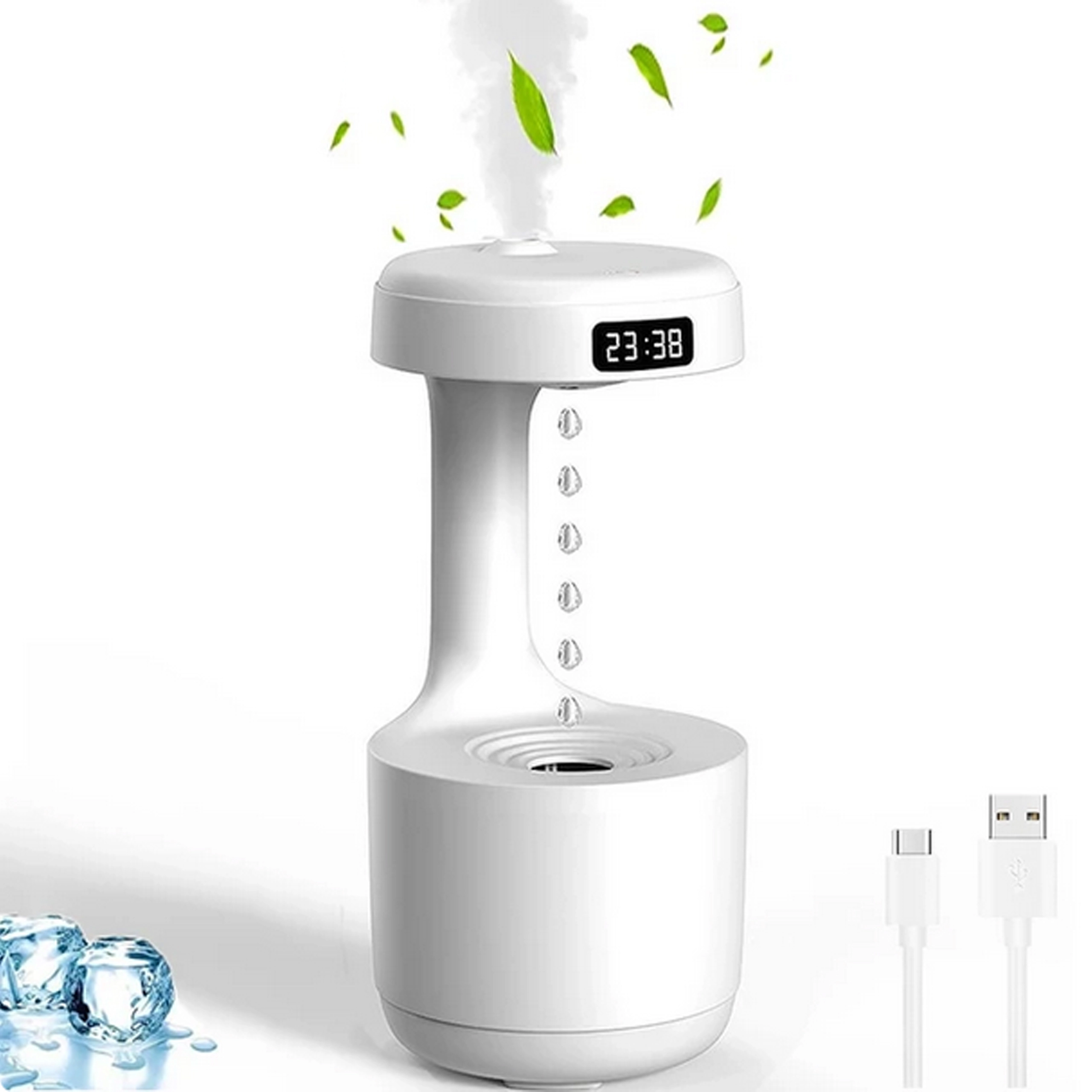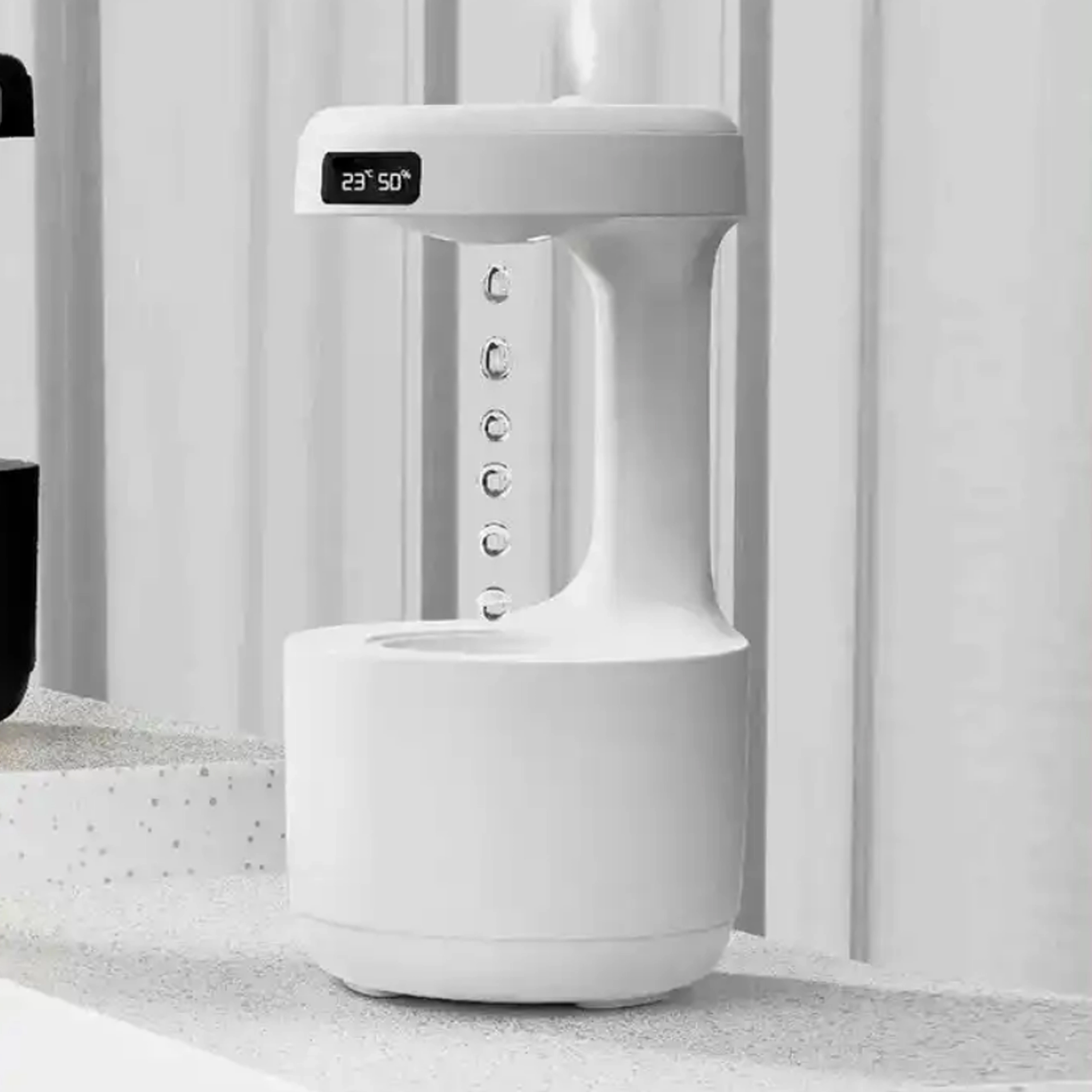 The anti-gravity air humidifier delivers a stunning visual effect of “rising droplets” while effectively increasing indoor humidity. Thanks to advanced technology, it creates a fine mist that helps reduce dry air, soothe irritated mucous membranes, and makes breathing easier day and night. The integrated LED display shows the time and status, while the quiet operation won’t disturb your sleep.