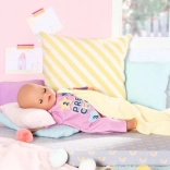 Adorable pink hooded onesie for BABY born dolls size 36 cm combines sleeping comfort and playtime fun. The easy fit style makes changing simple, and the quality workmanship ensures long-lasting play full of imagination and exploring the patches.