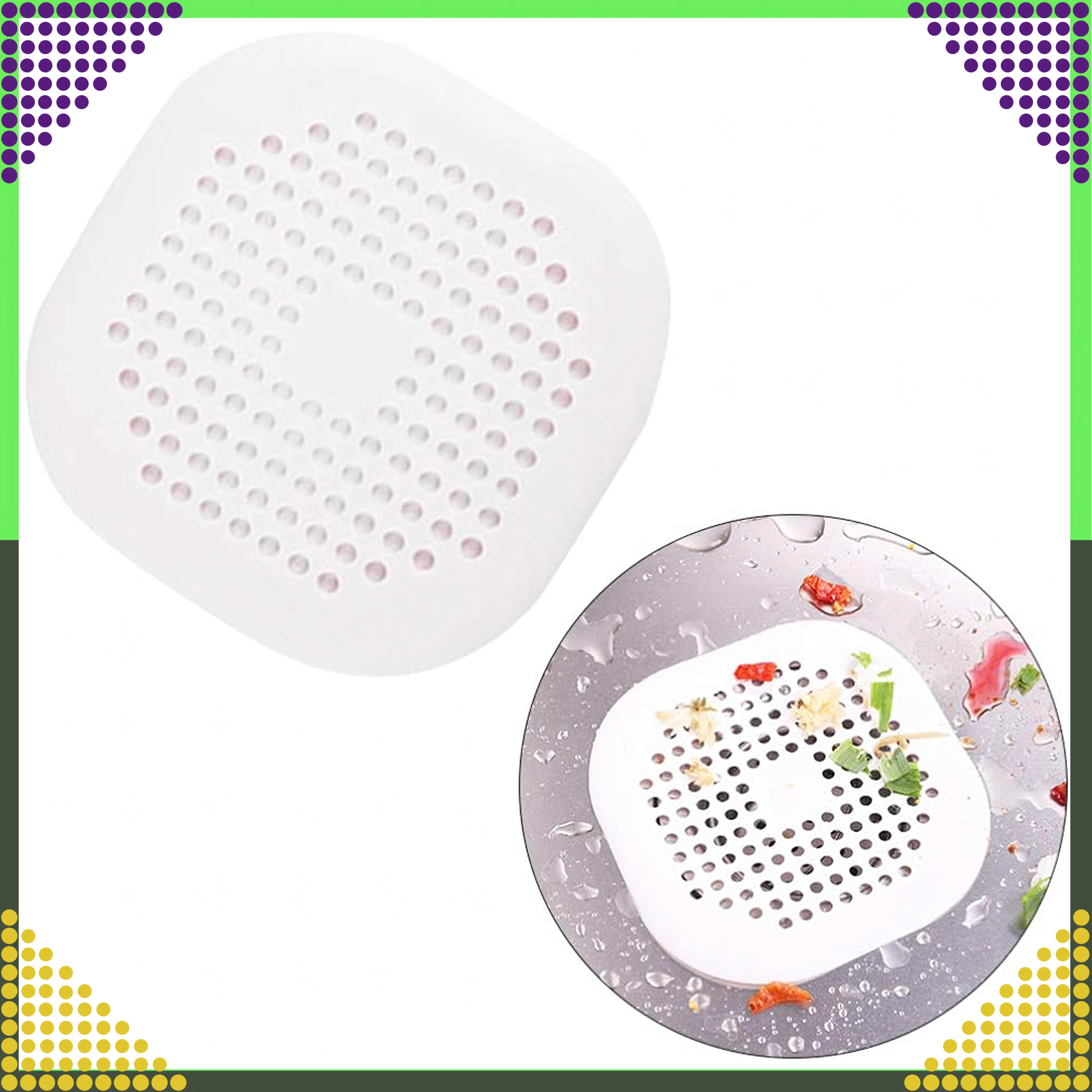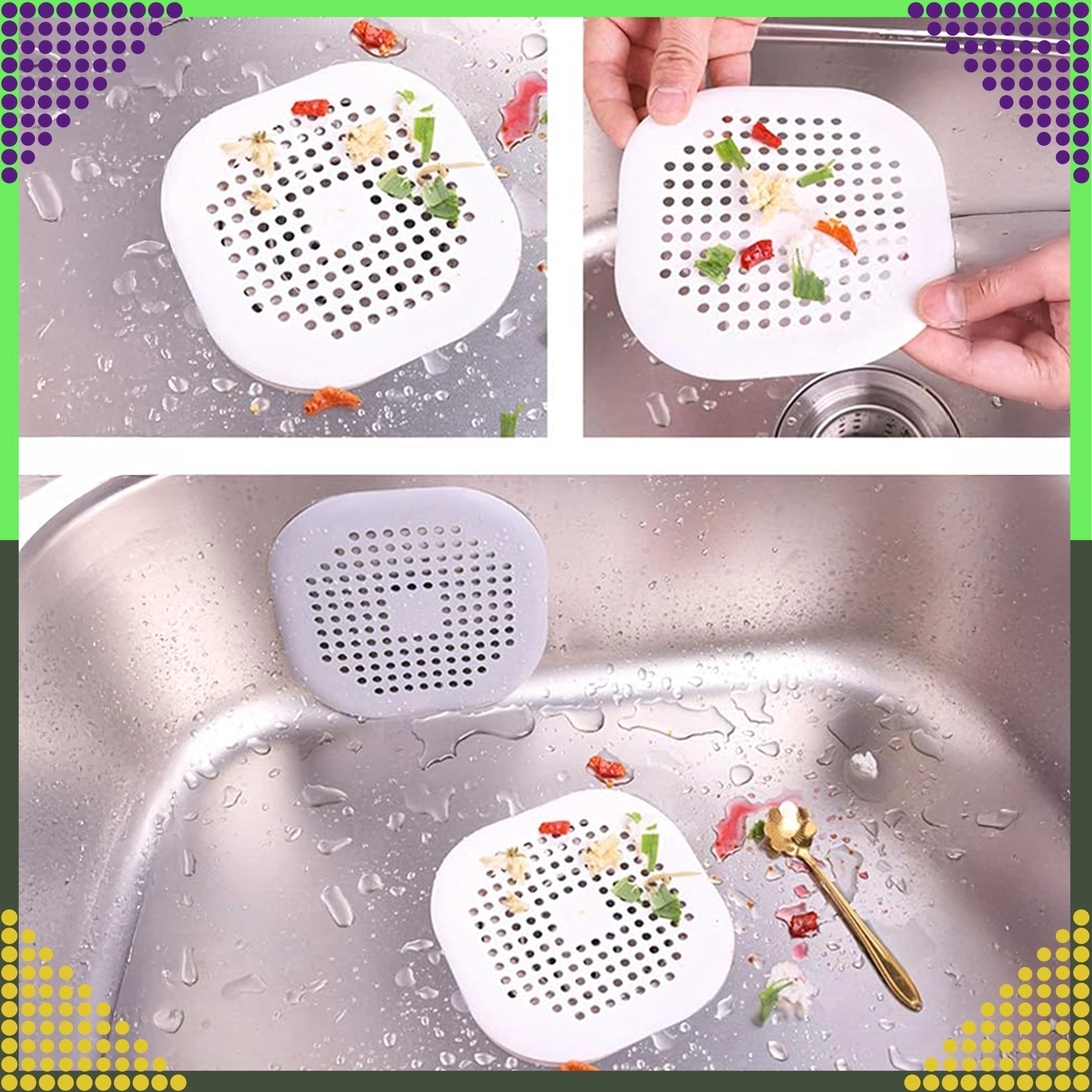 The universal silicone drain strainer reliably catches hair and food residues to prevent clogs in sinks, bathtubs, and washbasins. Thanks to the flexible silicone, it adheres well to the surface, is easy to clean, and can be placed over the drain in seconds. Ideal for everyday use in the kitchen and bathroom.