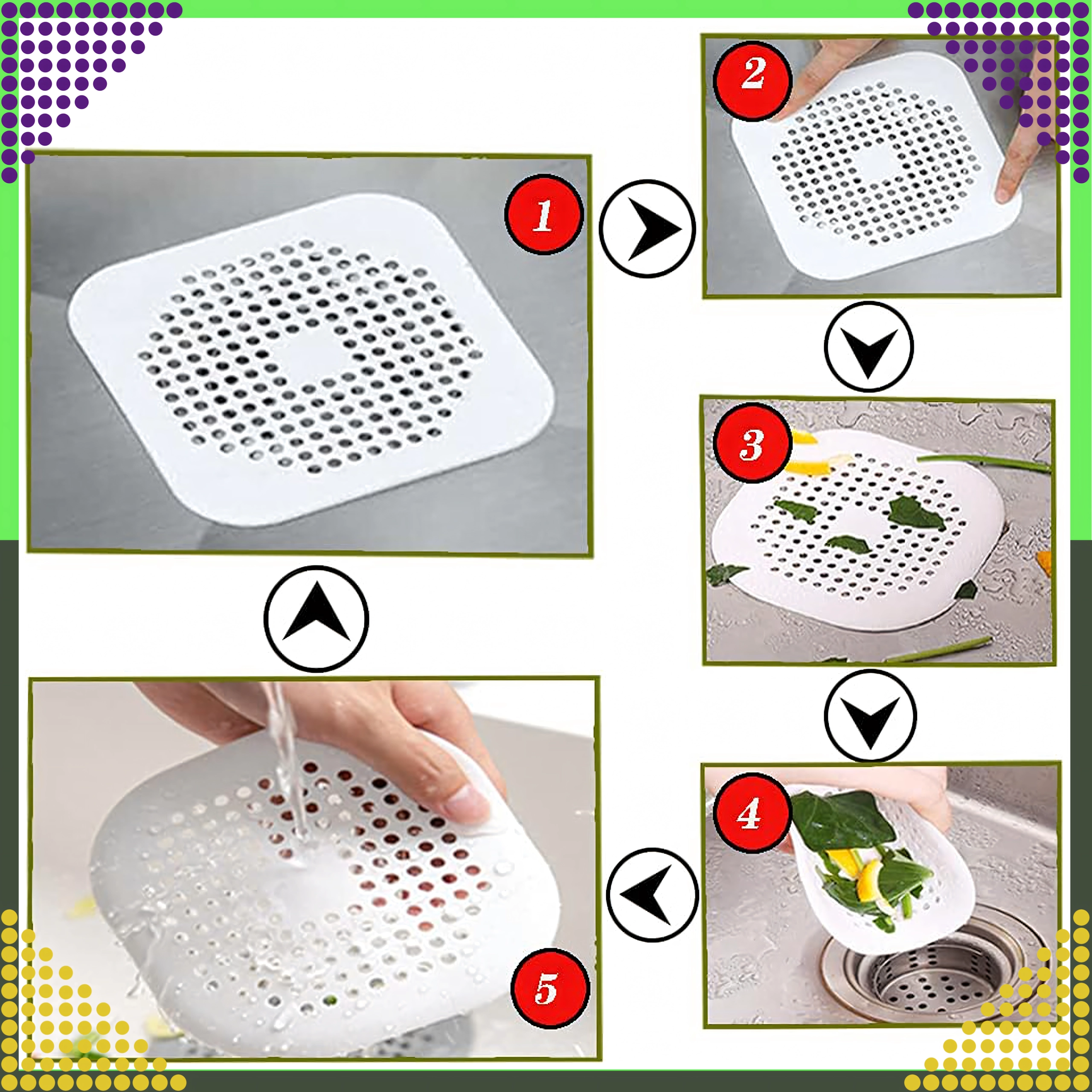 Installation takes moments—simply place it over the drain, and when full, lift it, rinse, and reuse. The minimalist white design suits any home and keeps drains clean and odor-free.