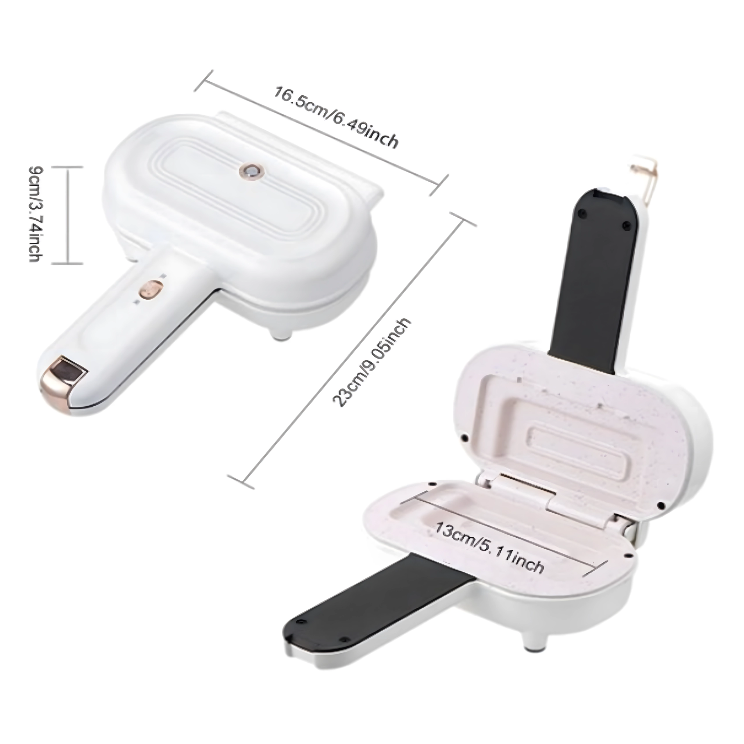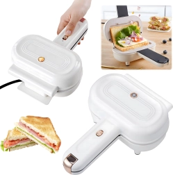 Prepare crispy toast and delicious sandwiches in just a few minutes. This compact electric sandwich maker with 700 W of power features non-stick plates for easy cleaning, a heat-insulated handle for safe use, and indicator lights to show heating and readiness. Ideal for home, office, and the whole family.