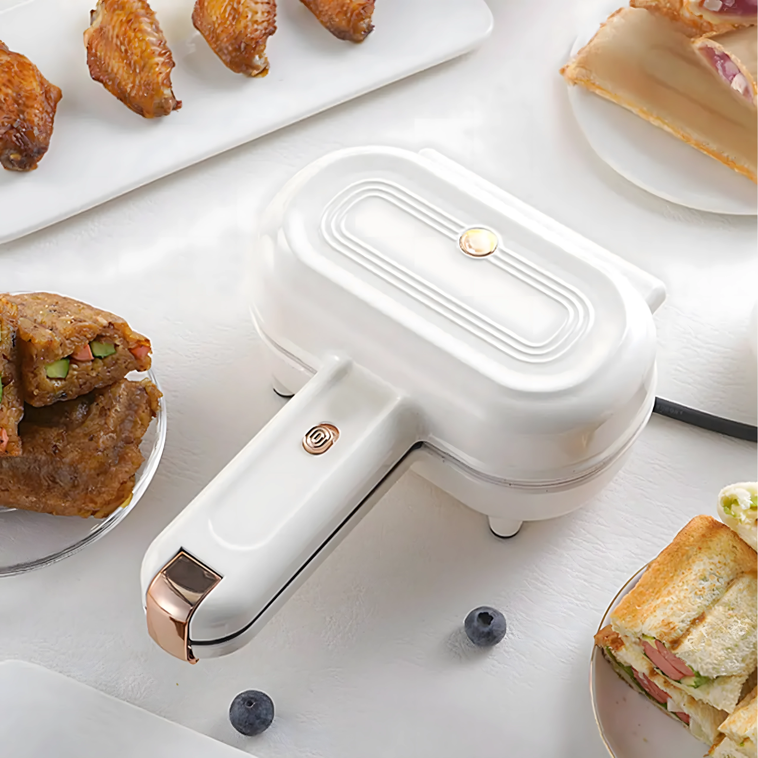 Non-stick cooking plates enable healthier cooking with minimal fat, and cleaning takes moments — just wipe with a damp cloth. The heat-insulated handle and lid lock enhance safety during handling, while the indicator light shows heating and readiness to cook.