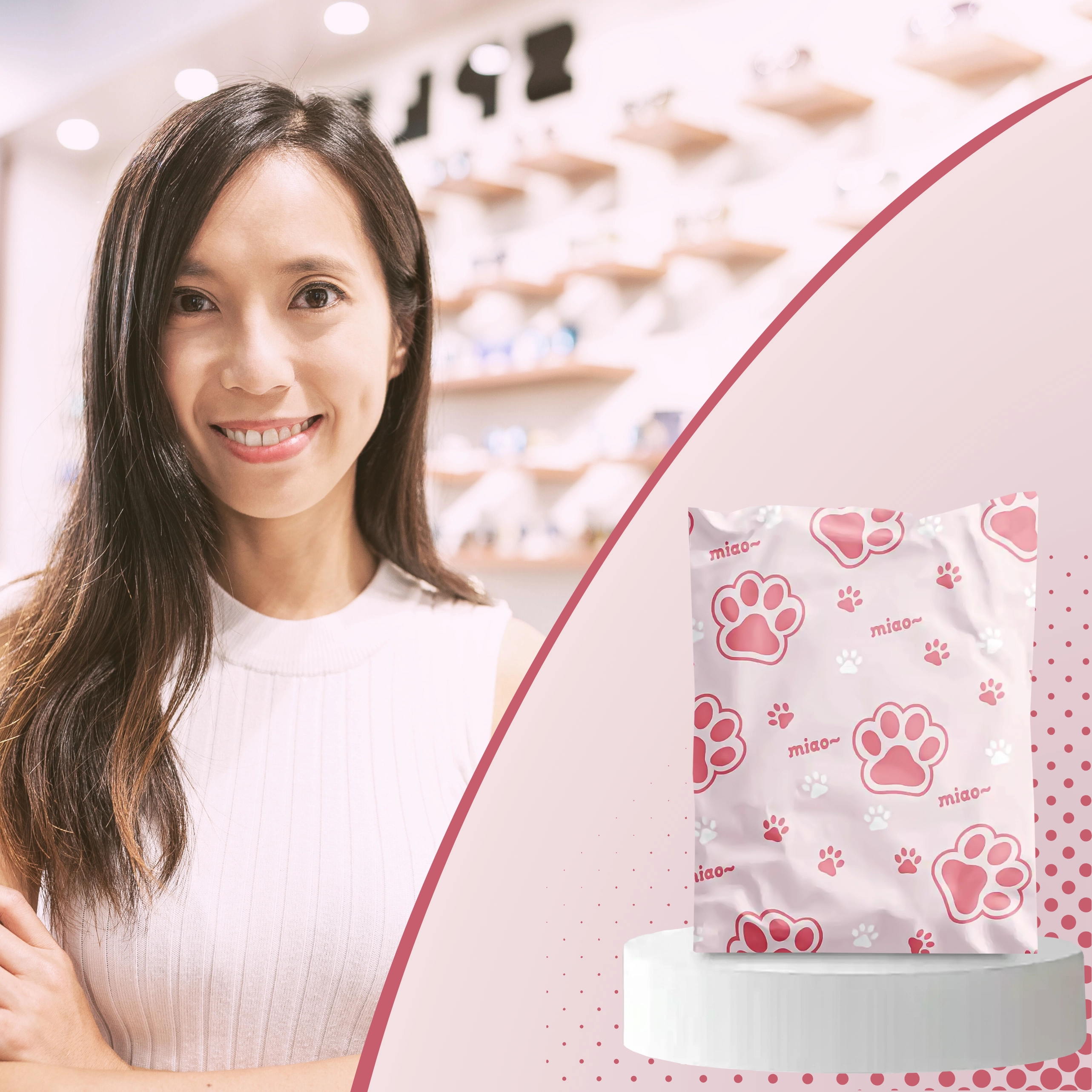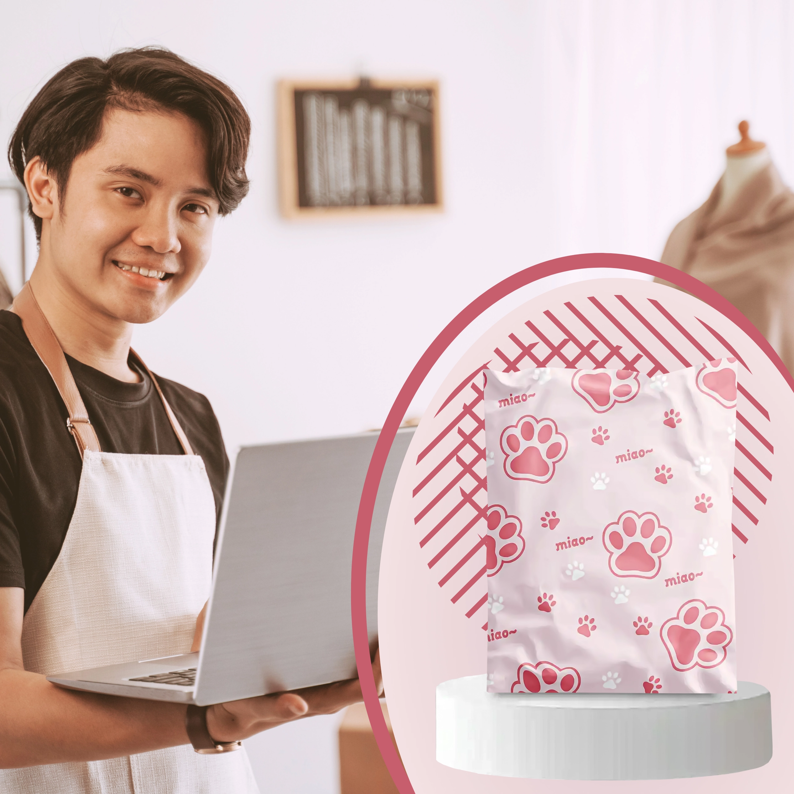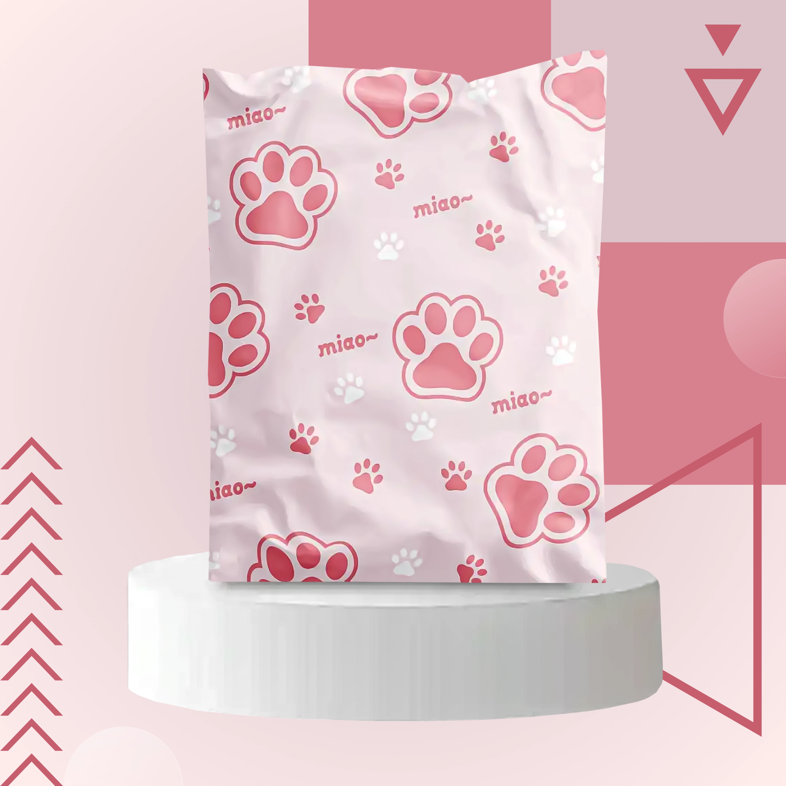 Pink-and-white print with the word “miao” adds personality to your parcels and stands out among ordinary packages.