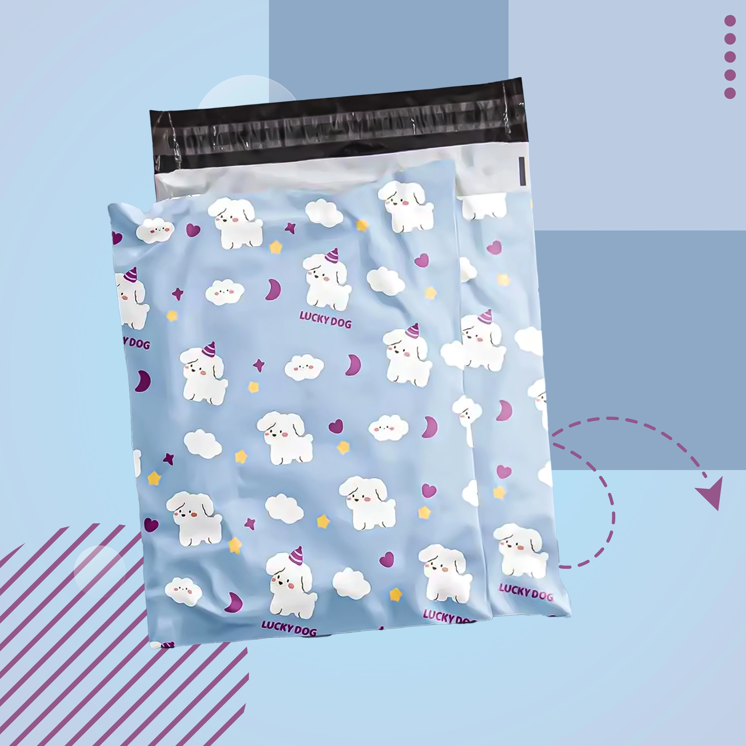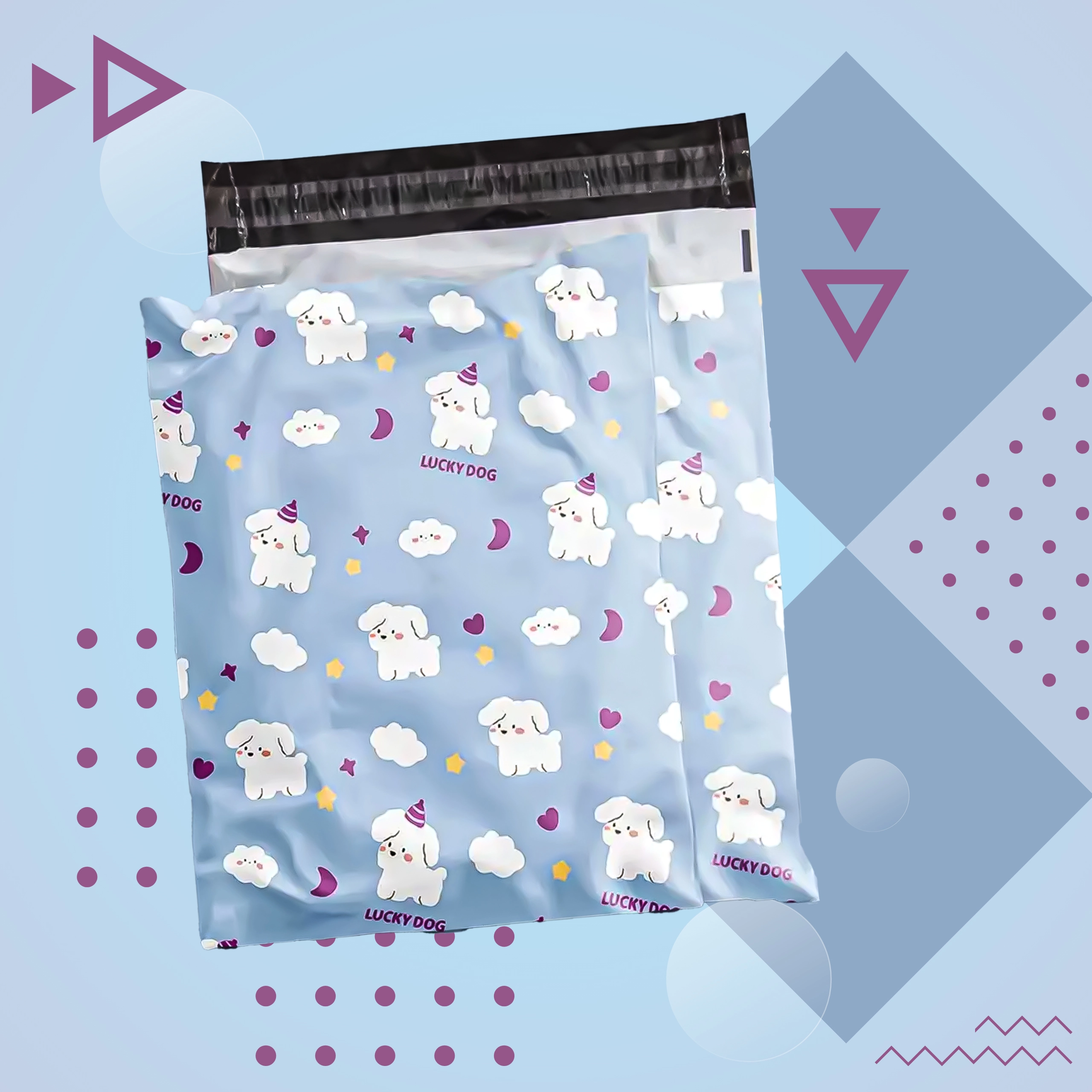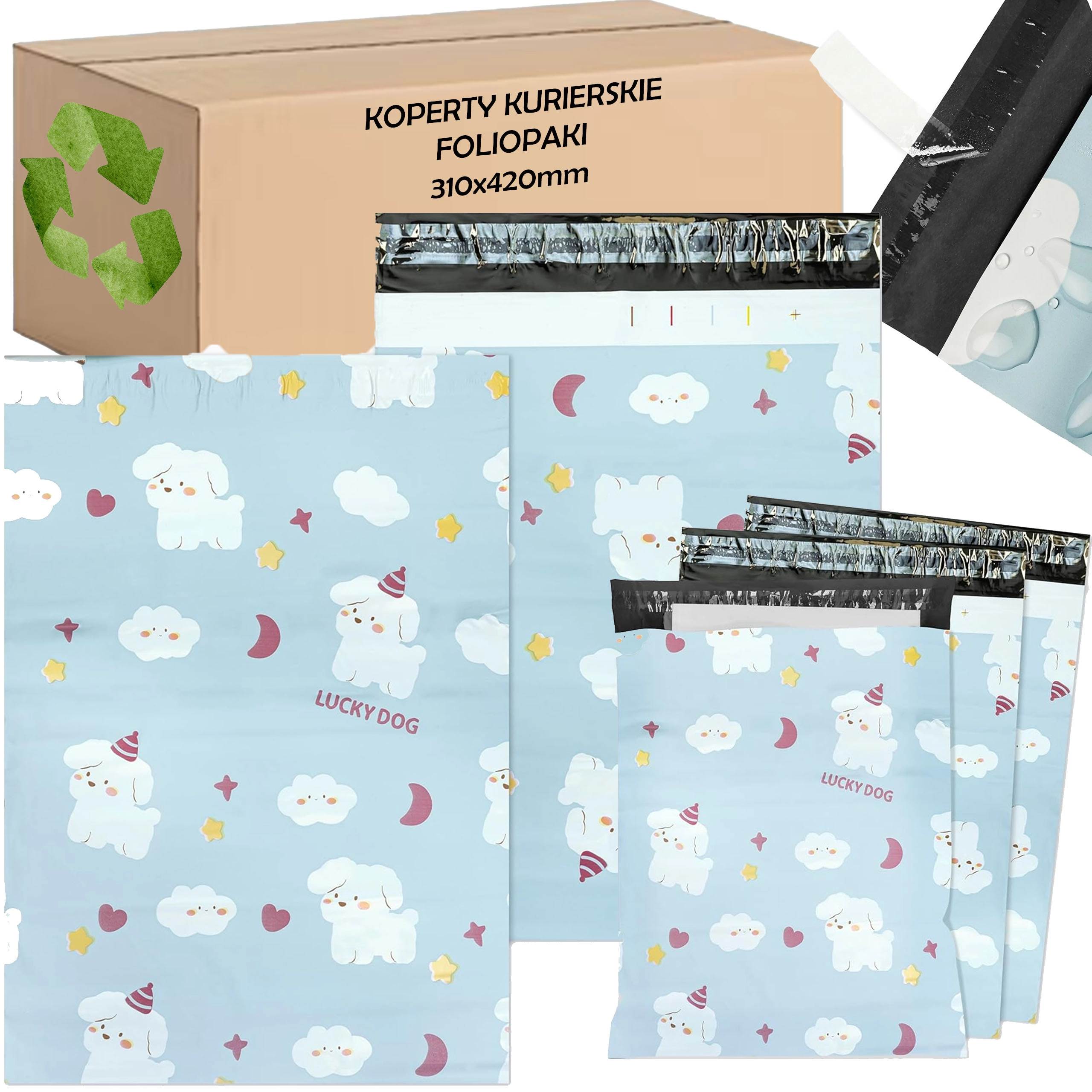 Practical and durable plastic courier envelopes with the LUCKY DOG motif for fast and secure shipping. Size 310 × 420 mm, self-adhesive strip for easy closure, lightweight and water-resistant material. Ideal for e-shops and shipping clothing or other soft products. The pack contains 50 pcs.