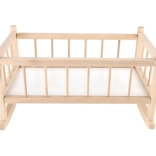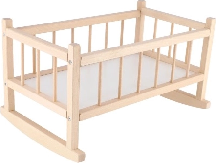 This stylish wooden cradle is designed to provide dolls with comfort and safety. Made from quality wood, it offers a simple yet elegant design.