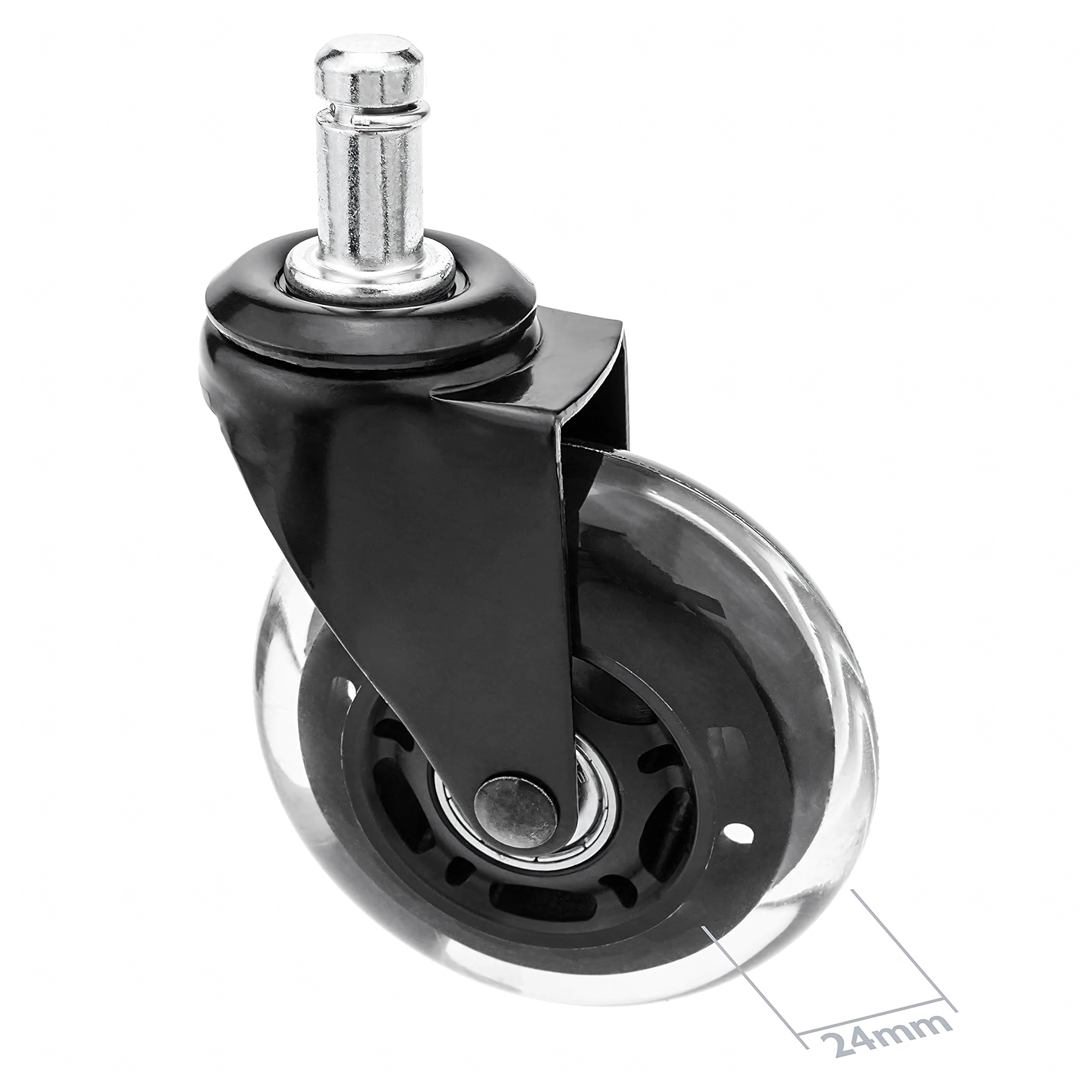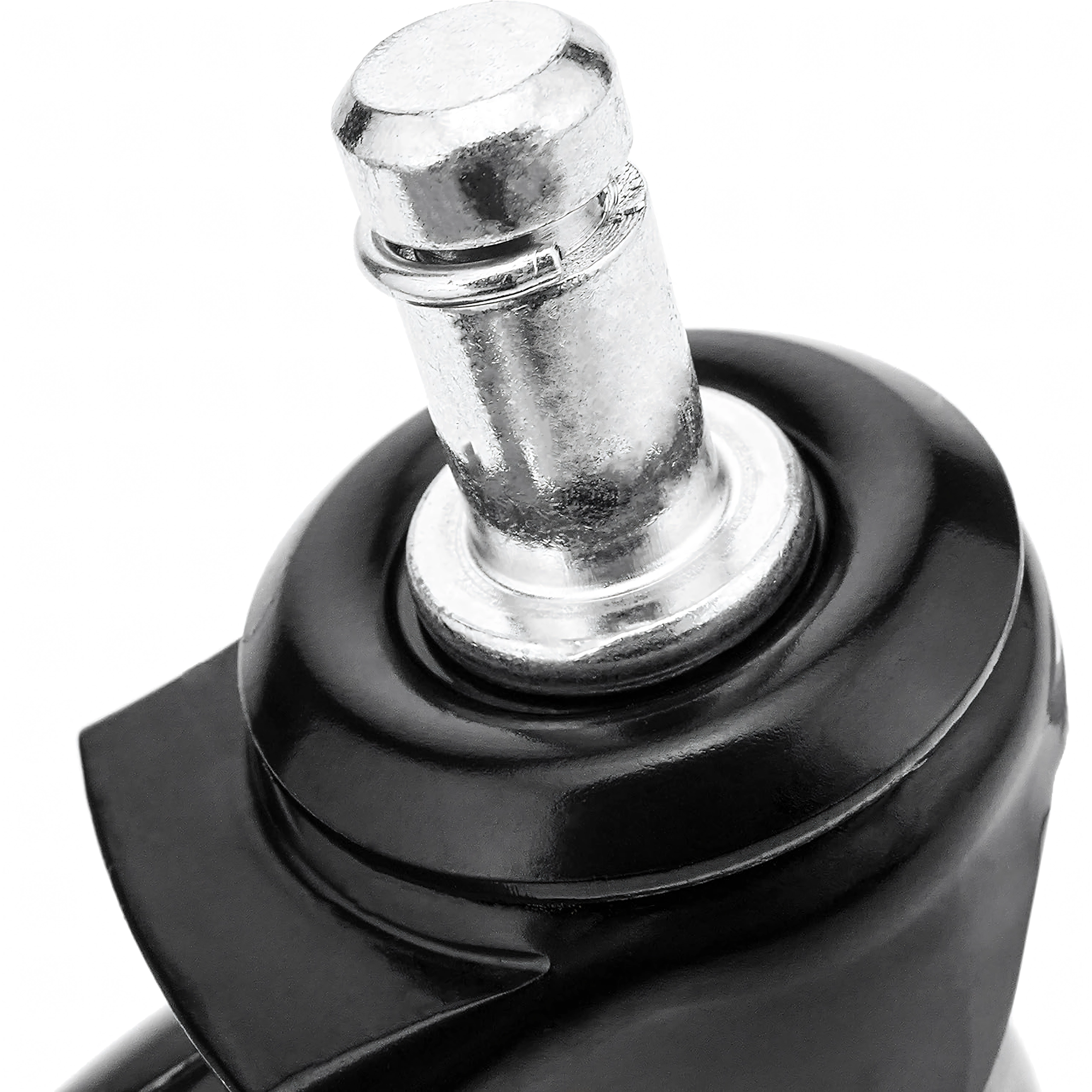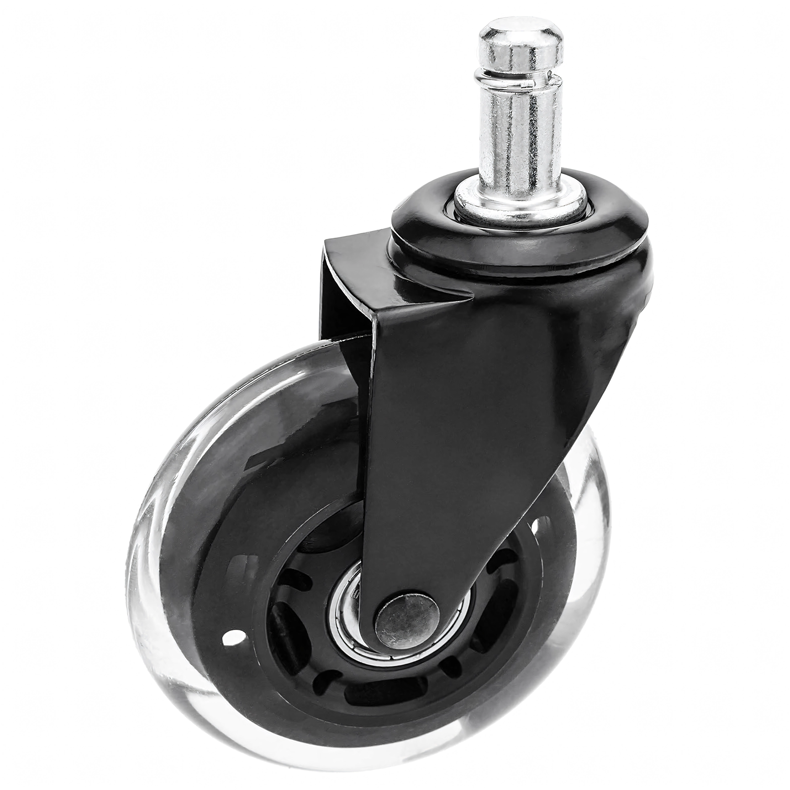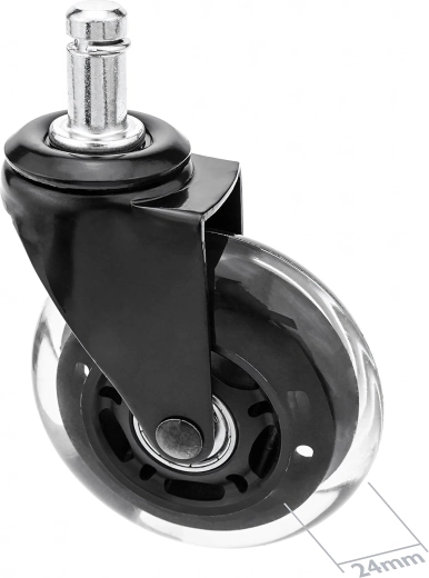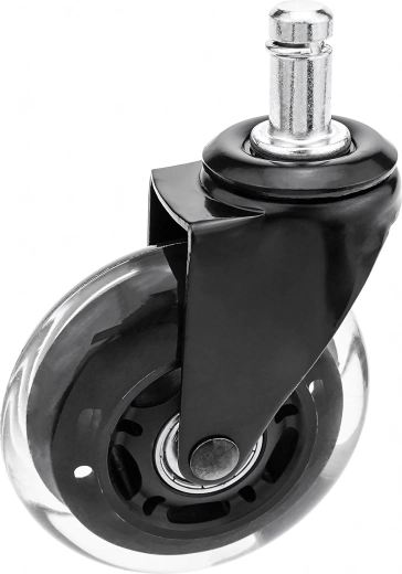 Universal rubber caster with a precision bearing for office and gaming chairs ensures quiet and smooth movement, long service life, and floor protection against scratches. Compatible with most chairs with a 12 mm stem. Also available as a pack of 100 pcs.