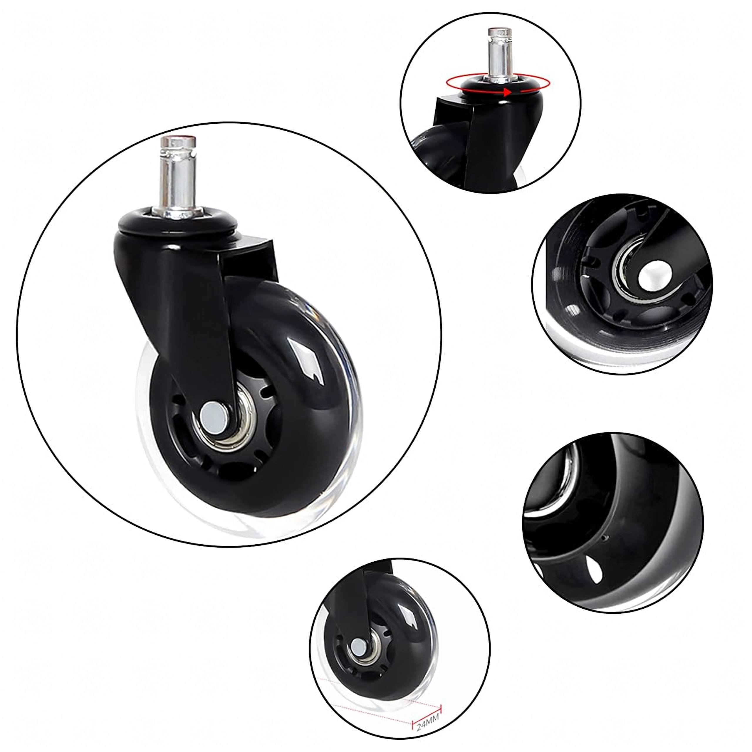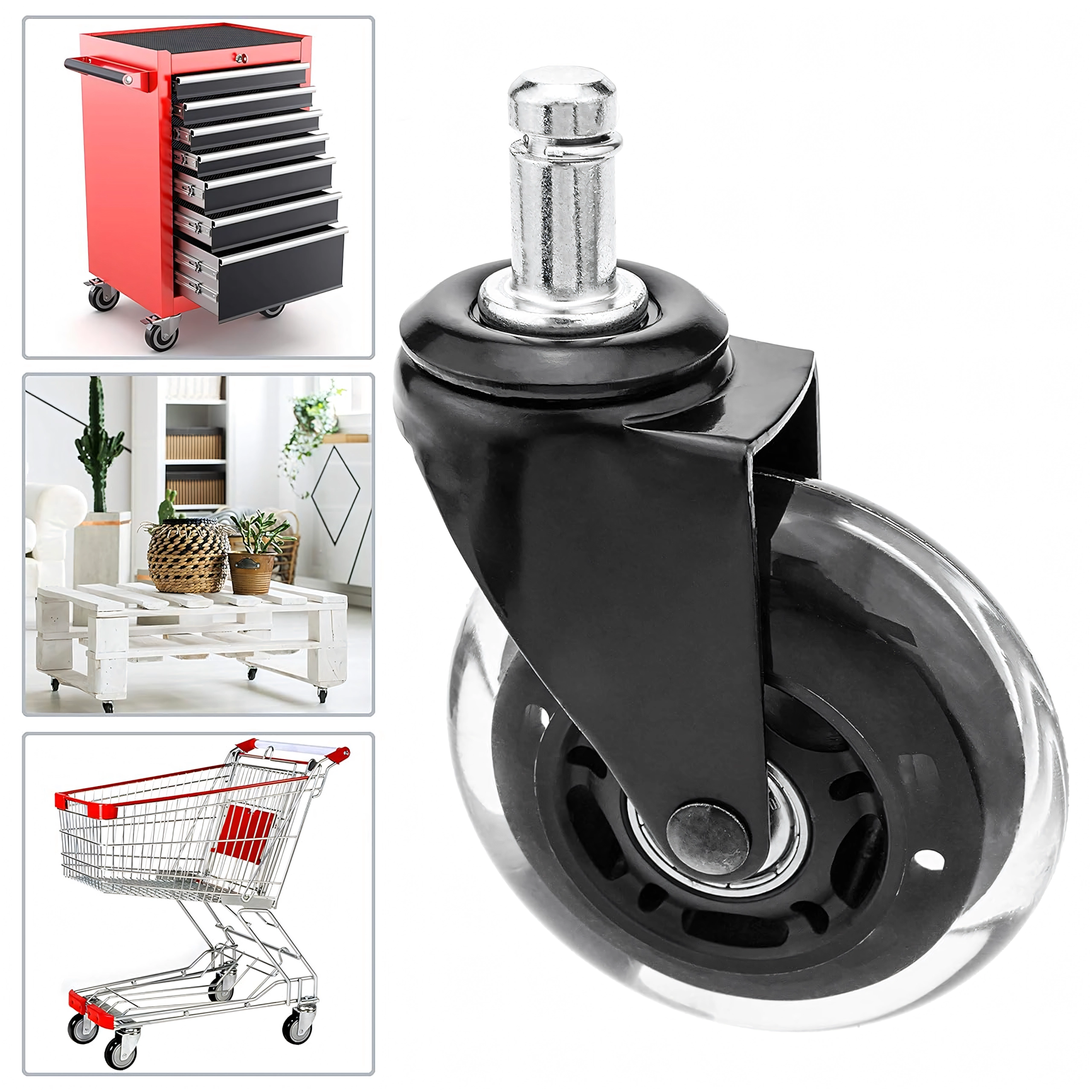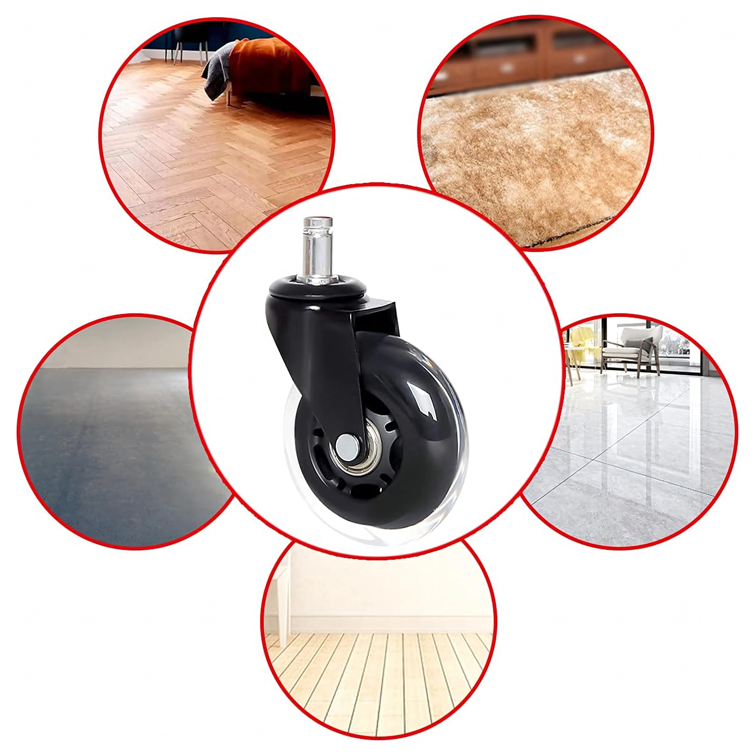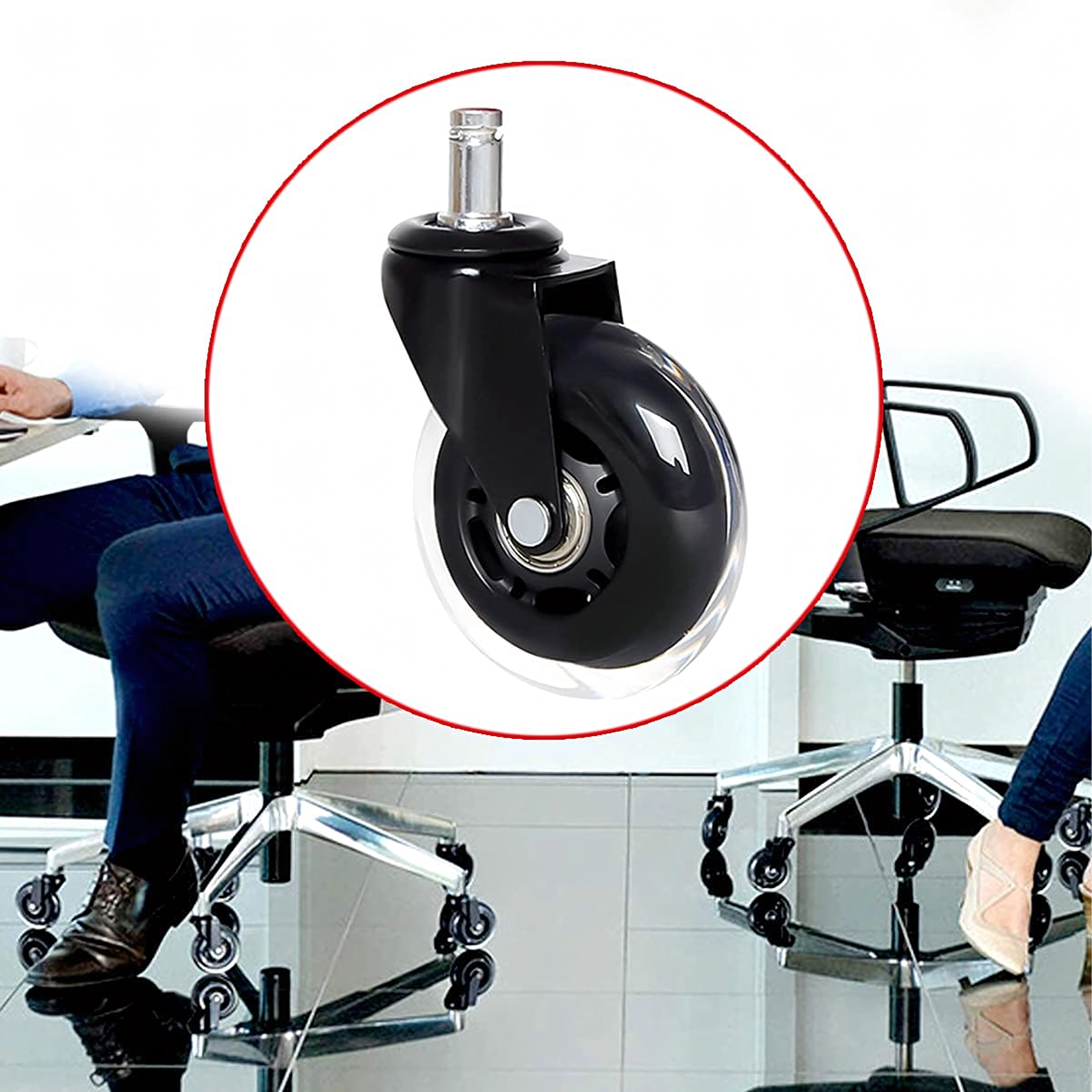 Universal rubber caster with a precision bearing for office and gaming chairs ensures quiet and smooth movement, long service life, and floor protection against scratches. Compatible with most chairs with a 12 mm stem. Also available as a pack of 100 pcs.