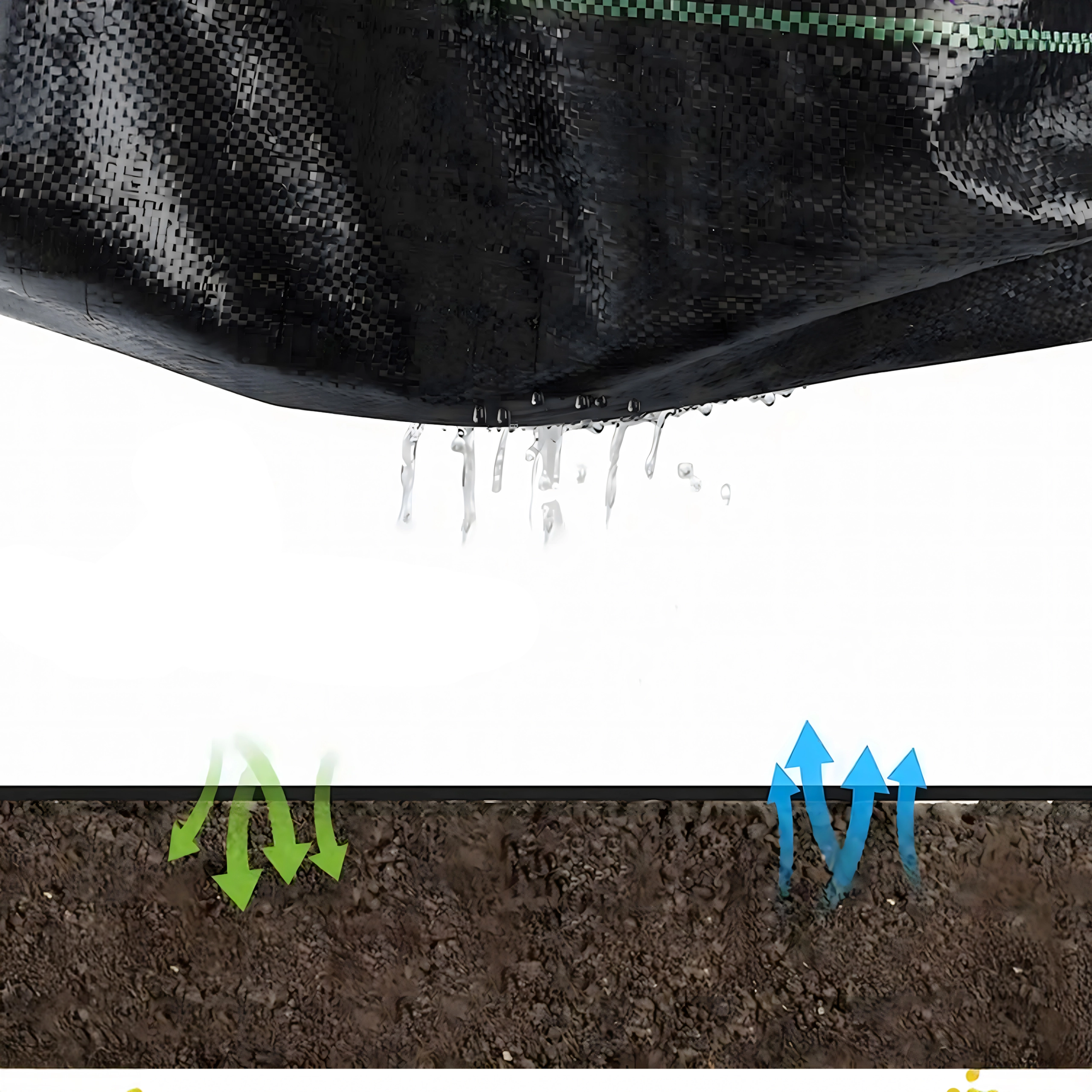 - Permeability: lets water and air through – does not block irrigation or soil respiration