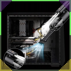 With the bristle attachment and LED lighting, it removes dust from keyboards, PC cases, and narrow gaps without risking damage to components.