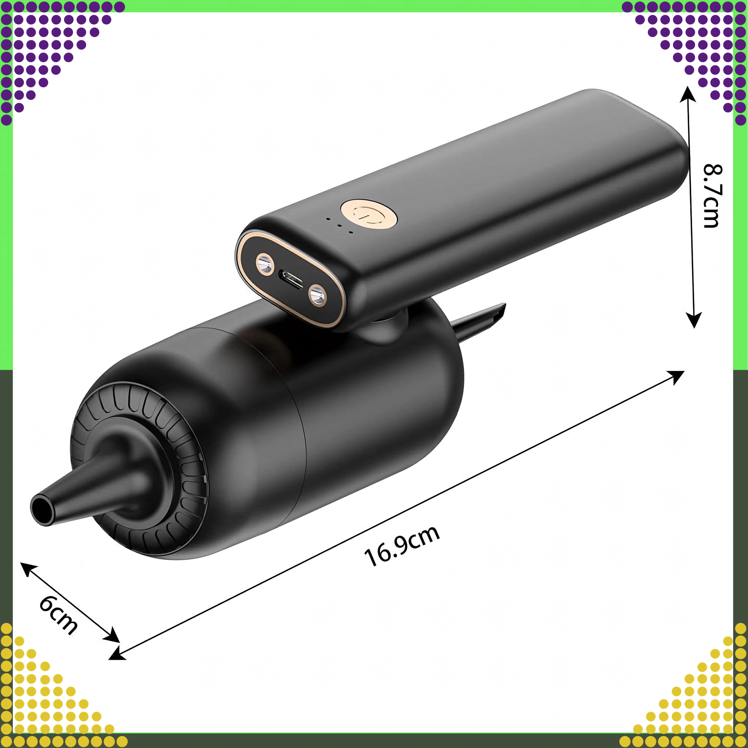 - 2‑in‑1 cordless handheld vacuum (suction/blow)
