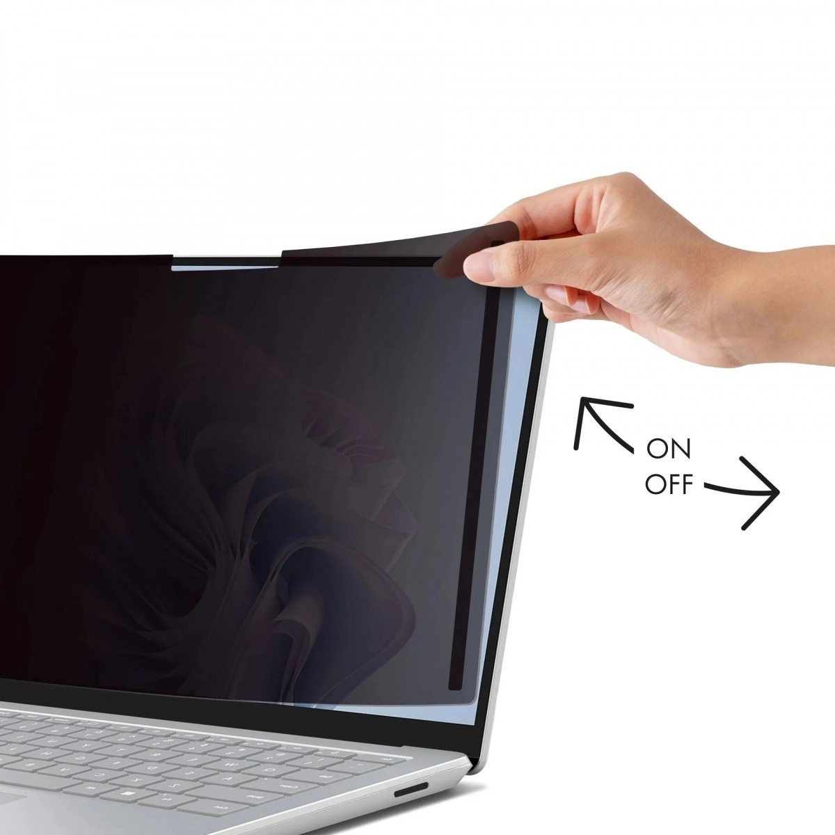 Beyond privacy protection, the filter also improves working comfort: it reduces glare, limits blue light by 43%, and protects the display from scratches and fingerprints. It is designed for displays with a 16:10 aspect ratio and a 15.6" diagonal, including compatibility with touchscreens.