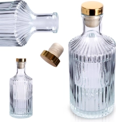 An elegant 250 ml glass bottle with a ribbed surface, ideal for homemade liqueurs, wine, syrups and juices. Thanks to the tight gold cork, it reliably preserves freshness and prevents leaks. The transparent glass beautifully showcases the contents and the bottle also serves as a decorative accessory for the kitchen or bar.
