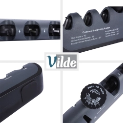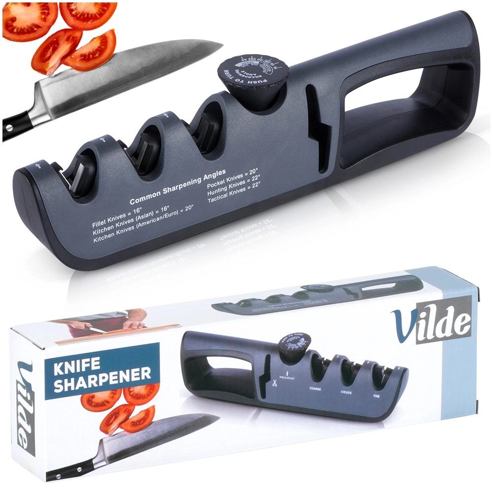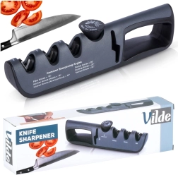 This versatile Vilde knife sharpener combines the convenience of at-home sharpening with the precision of adjustable angles. Using the rotary selector, you can easily set the correct 14–24° angle for the blade type—from kitchen and fillet knives to EDC and hunting knives. Thanks to the non-slip base and ergonomic wide-grip handle, operation is safe and stable.