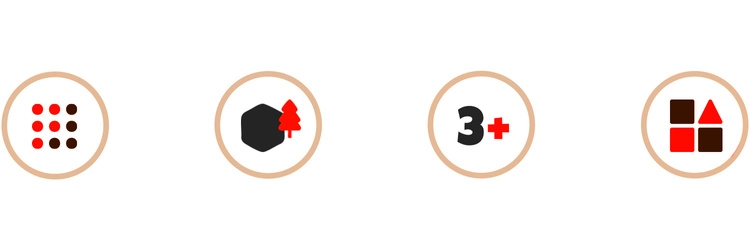 - Learning through play: shape and color recognition, development of logical thinking and social skills.
