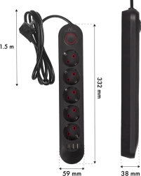 This compact and durable power strip combines classic outlets with built-in USB charging, saving both space and adapters. A wide input voltage range of 110–240 V AC (50/60 Hz) ensures reliable operation in various conditions, and the maximum load of 2500 W covers most everyday appliances.