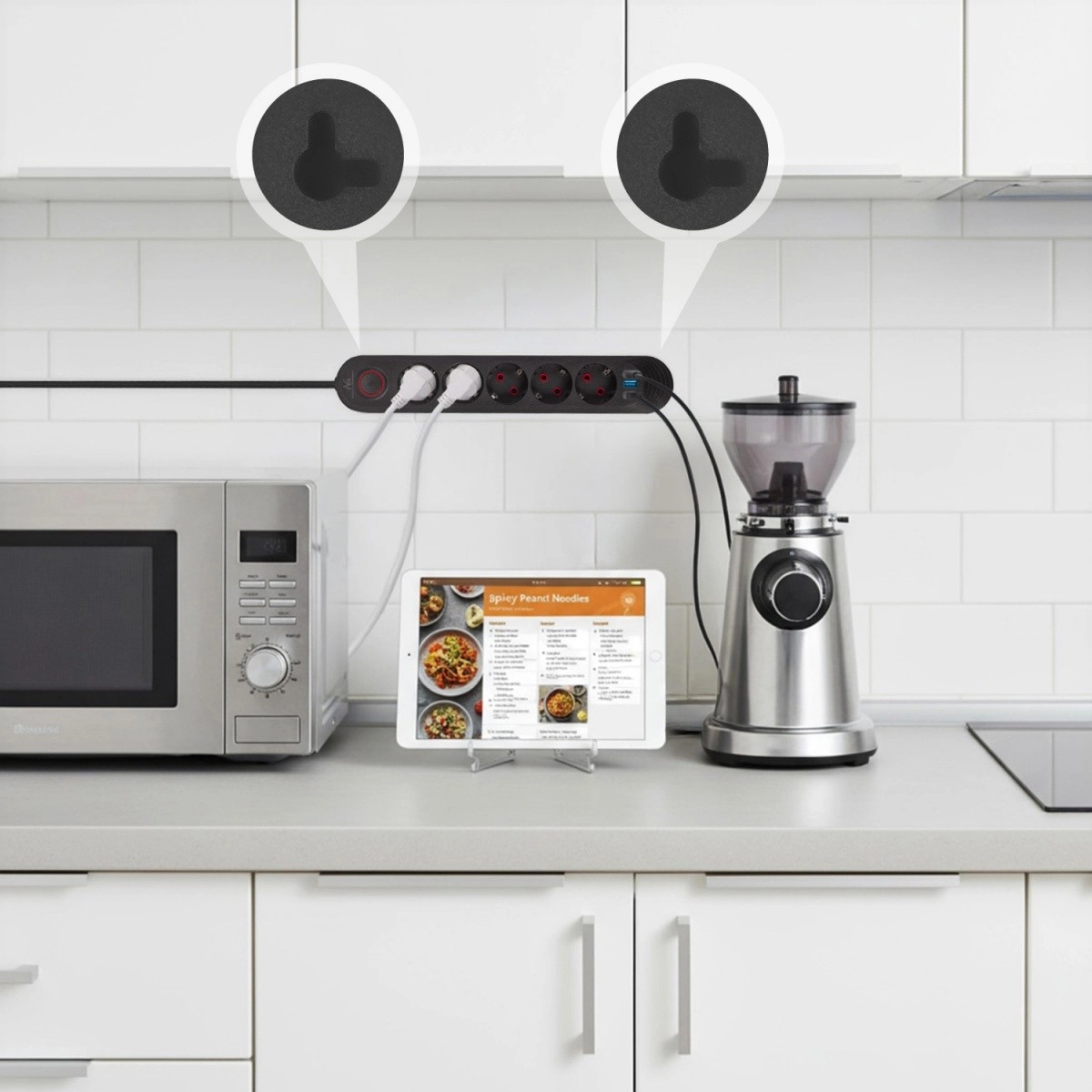 Five Schuko sockets and three USB ports let you power appliances while charging phones, tablets, or headphones—without separate adapters.