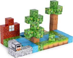 Textured block surfaces resembling grass, water, wood, or stone inspire the creation of trees, paths, rivers, and little houses — imagination knows no bounds.