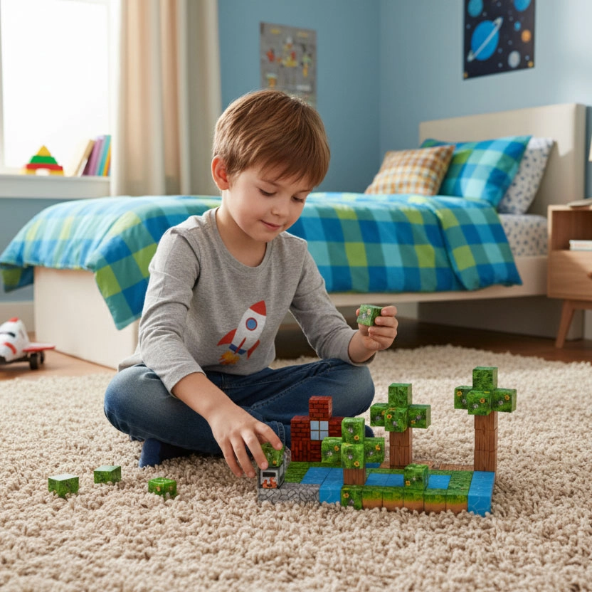 Playing with magnetic blocks naturally develops fine motor skills, creativity, and spatial awareness. Children practice planning, logical thinking, and patience while building simple towers as well as more complex 3D models. The set is suitable for children aged 3+ and is perfect for home, preschool, and travel.