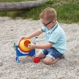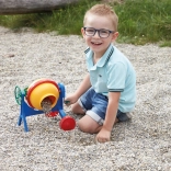 This colorful children's mixer faithfully imitates a real construction machine. Using the side crank, the drum can be easily rotated to mix sand or small pebbles. Thanks to the stable frame and smooth edges, play is safe and fun.