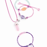 This creative set from MAKE IT REAL's Positive Gems Jewelry collection inspires crafting and develops fine motor skills. With clear components and easy stringing, kids can make an original necklace and three matching bracelets that elevate any outfit.