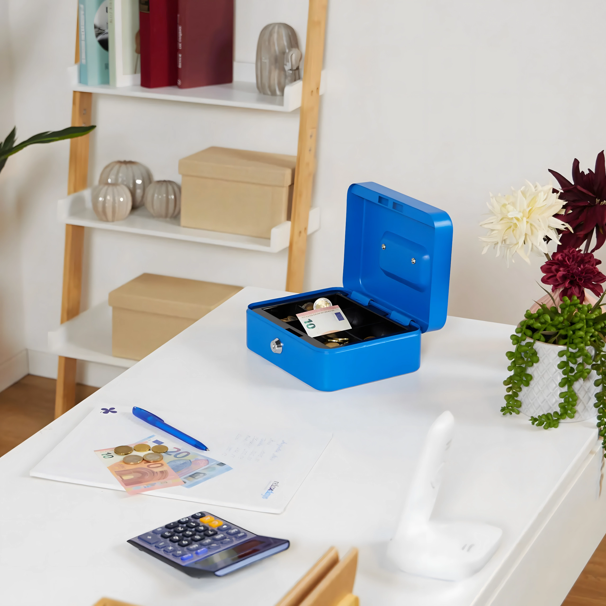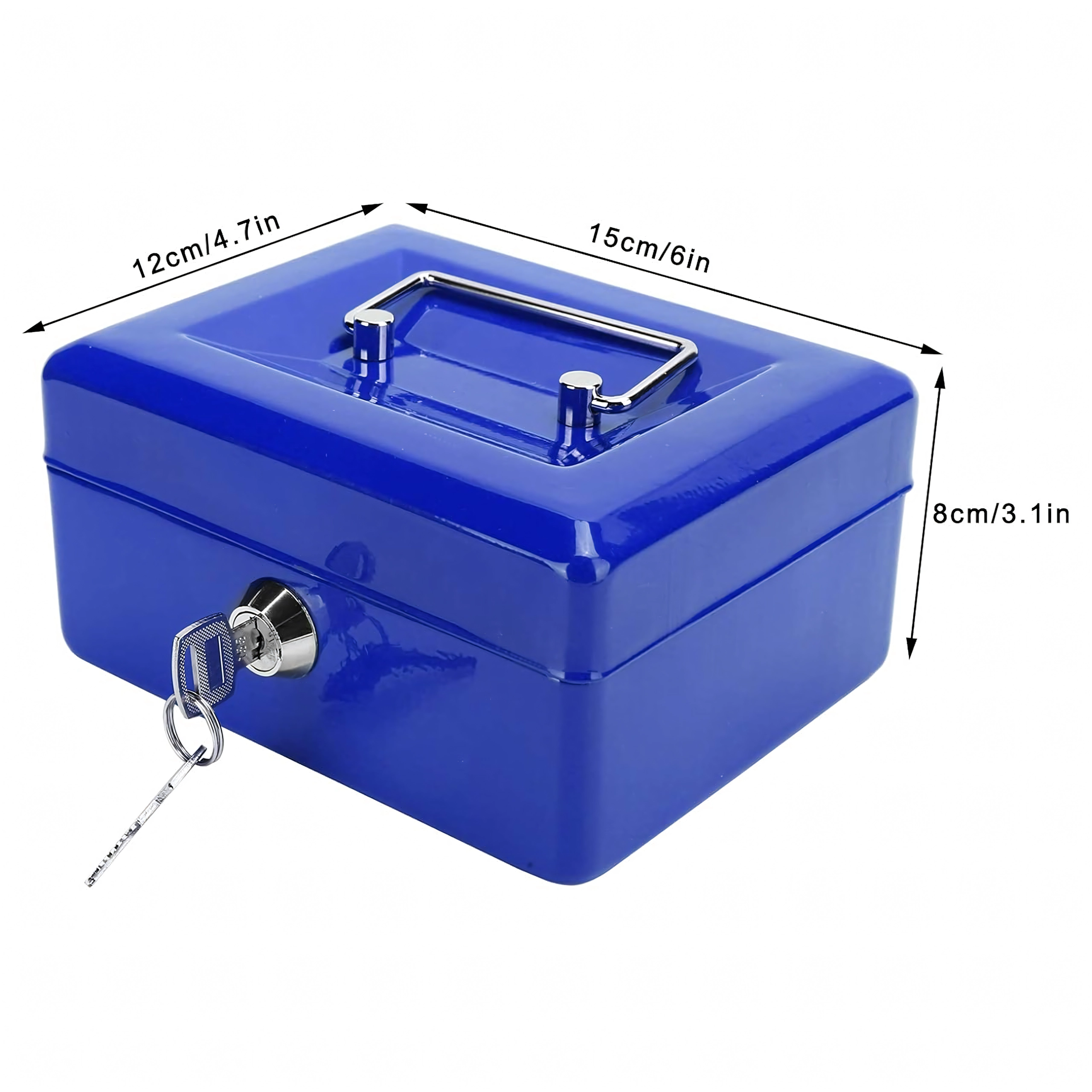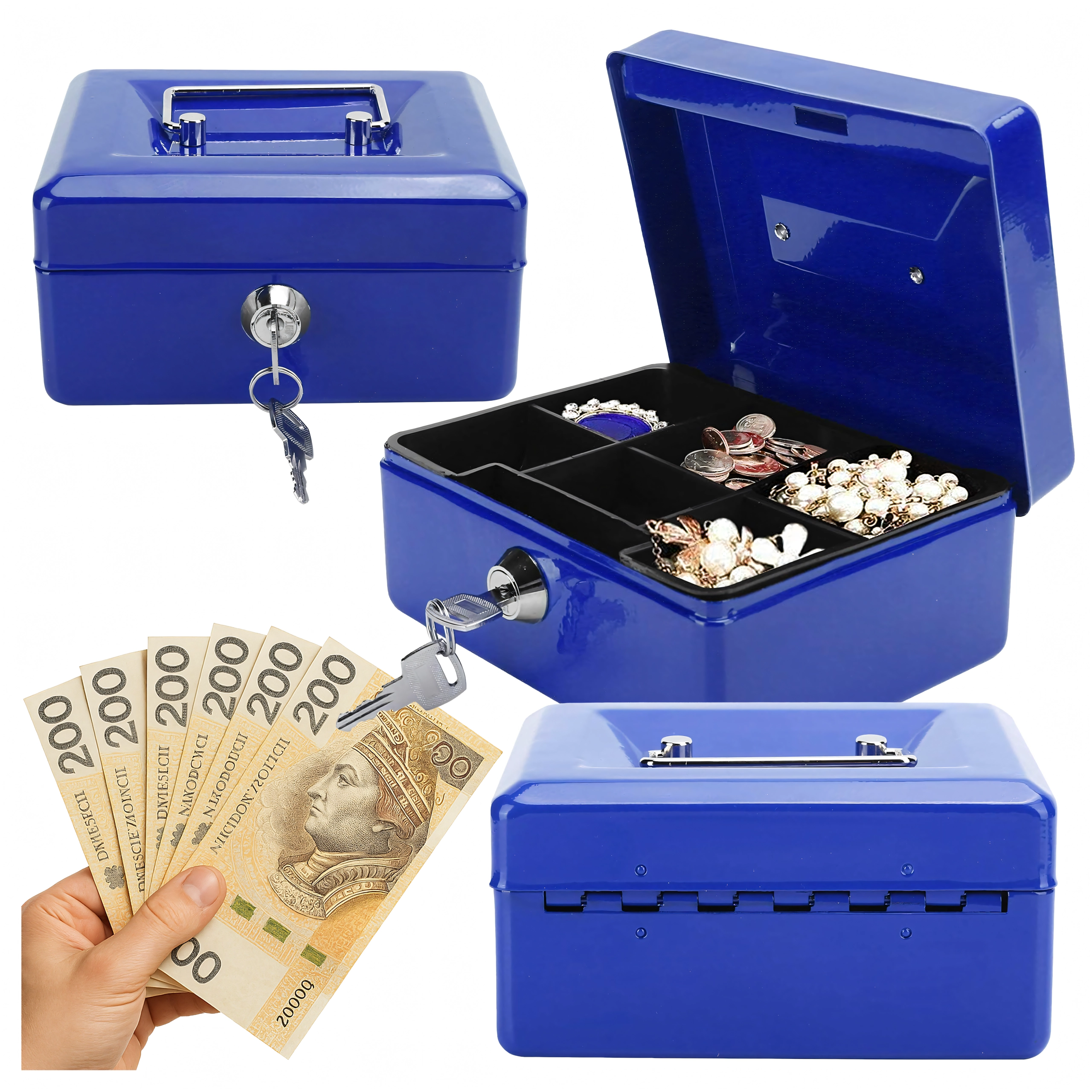 Thanks to its compact dimensions and practical handle, it’s easy to carry while still providing ample space for coins, folded banknotes, receipts, and small valuables. The robust construction ensures durability and peace of mind in everyday use.