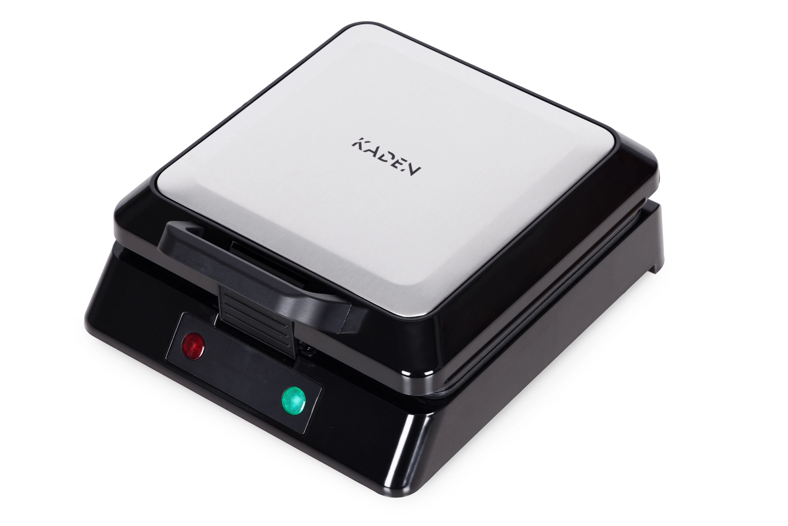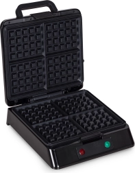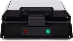 Bake perfectly crispy waffles at home easily and quickly. The KADEN waffle maker offers 1080–1300 W of power, non-stick plates for baking without burning, operation indicators, a lid safety lock, and non-slip feet. It prepares 4 square waffles at once and ensures even baking thanks to a stable temperature up to 200 °C.