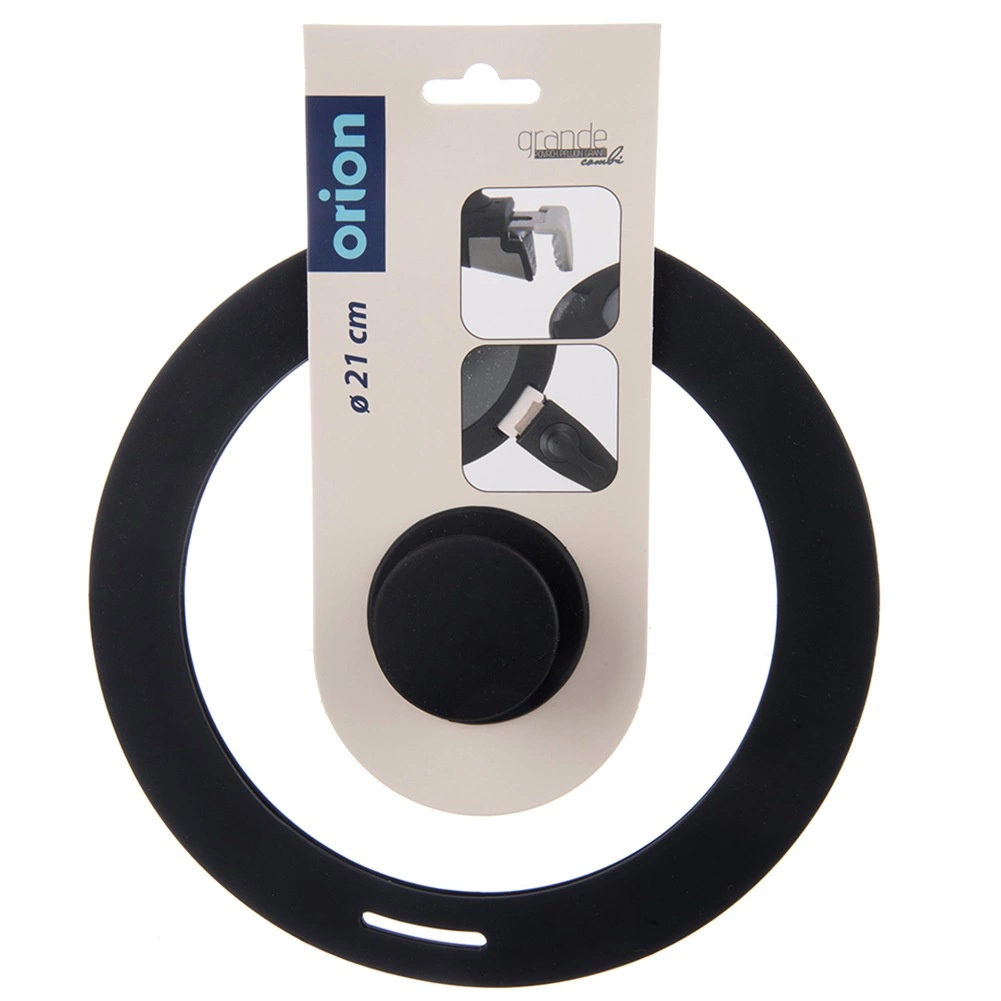 The borosilicate glass lid with a wide silicone rim fits perfectly on pots and pans with a 20 cm diameter. The transparent glass provides constant control of the food, while the silicone ensures stable, tight seating without rattling and with minimal steam loss.