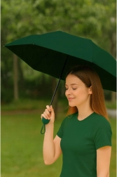 A lightweight, compact umbrella with a 90 cm diameter offers reliable protection from rain and sun. Thanks to the UPF 50+ UV filter, it shields your skin from harmful rays, while the durable polyester and sturdy frame ensure long life. The folding design with a wrist strap and a protective case makes this dark green umbrella an ideal companion for your handbag, backpack, or travel bag.