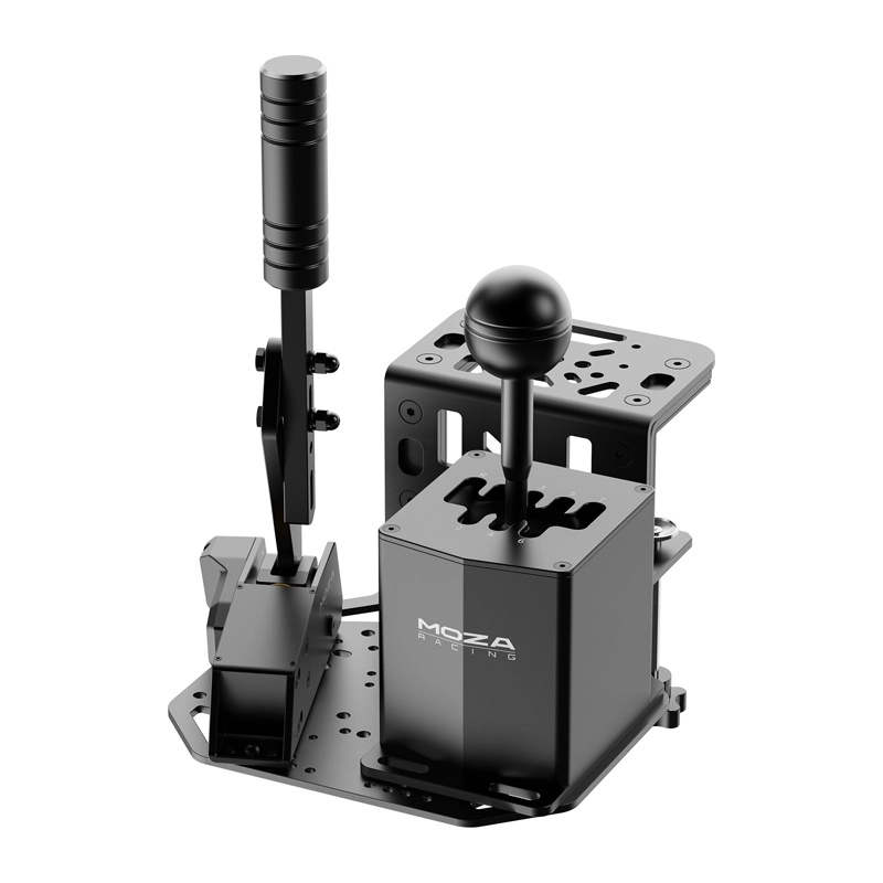 The compact and durable universal MOZA mounting plate enables simultaneous installation of a shifter and a handbrake on a single bracket. It offers adjustable height, an optional handbrake angle, and wide compatibility with MOZA and selected third‑party devices. Thanks to its rigid steel construction, it ensures stability even during intense sim racing or flight simulation.