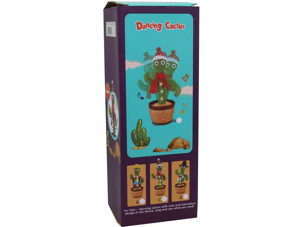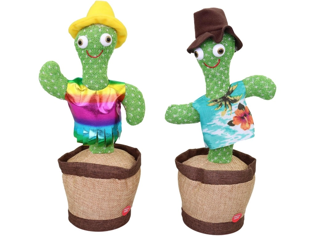 Brighten up any room with this dancing cactus with light that dances to the beat, repeats sounds and voice, and guarantees loads of fun for kids and adults alike. Just insert the batteries, switch to ON, and press the marked spot.