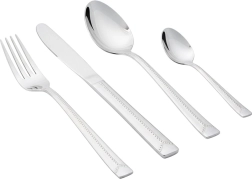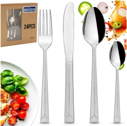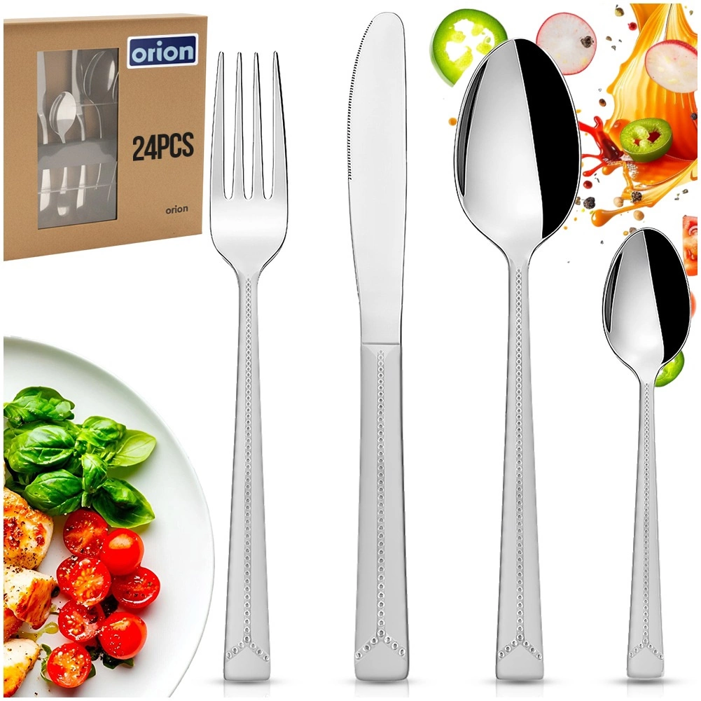 An elegant cutlery set for 6 people with 24 pieces for everyday use and special occasions. Made of high-quality stainless steel with a durable finish and decorative design. Dishwasher safe, though hand washing is recommended to maintain long-lasting shine. Its classic, timeless look complements any table setting.